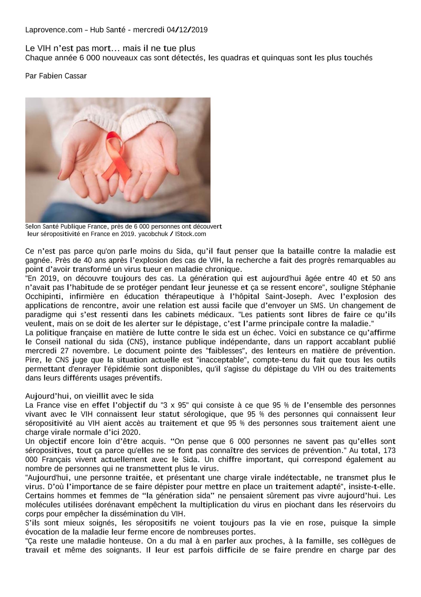 La Provence Hub Santé, 04/12/2019 : Le VIH n'est pas mort... mais il ne tue plus La Provence Hub Santé, 04/12/2019 : Le VIH n'est pas mort... mais il ne tue plus (31.4 Ko)