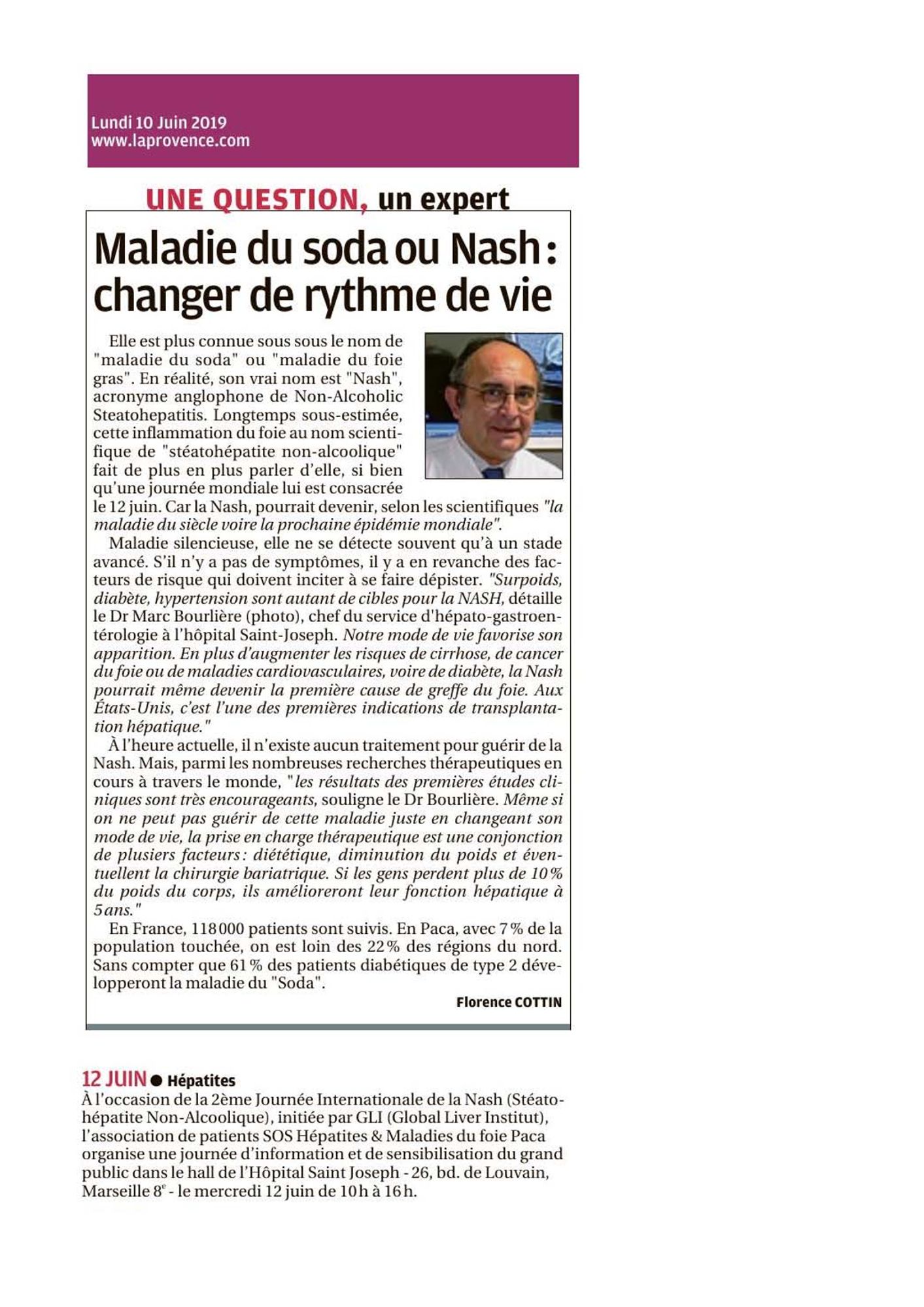 La Provence, 10/06/2019 : Maladie du soda ou Nash : changer de rythme de vie La Provence, 10/06/2019 : Maladie du soda ou Nash : changer de rythme de vie (184.3 Ko)