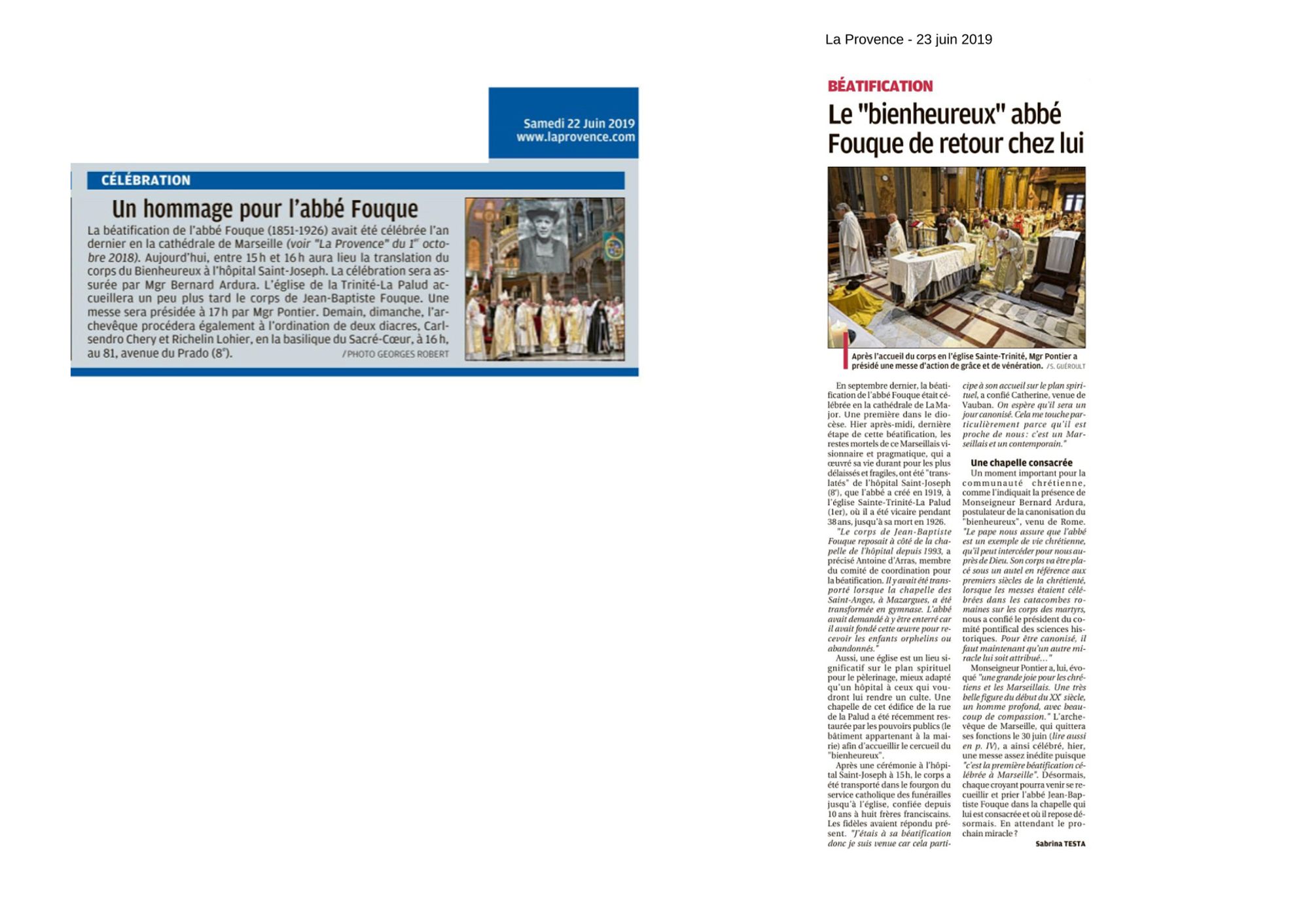 La Provence, 22 & 23 juin : articles sur la translation de l'abbé Fouque La Provence, 22 & 23 juin : articles sur la translation de l'abbé Fouque (345.9 Ko)