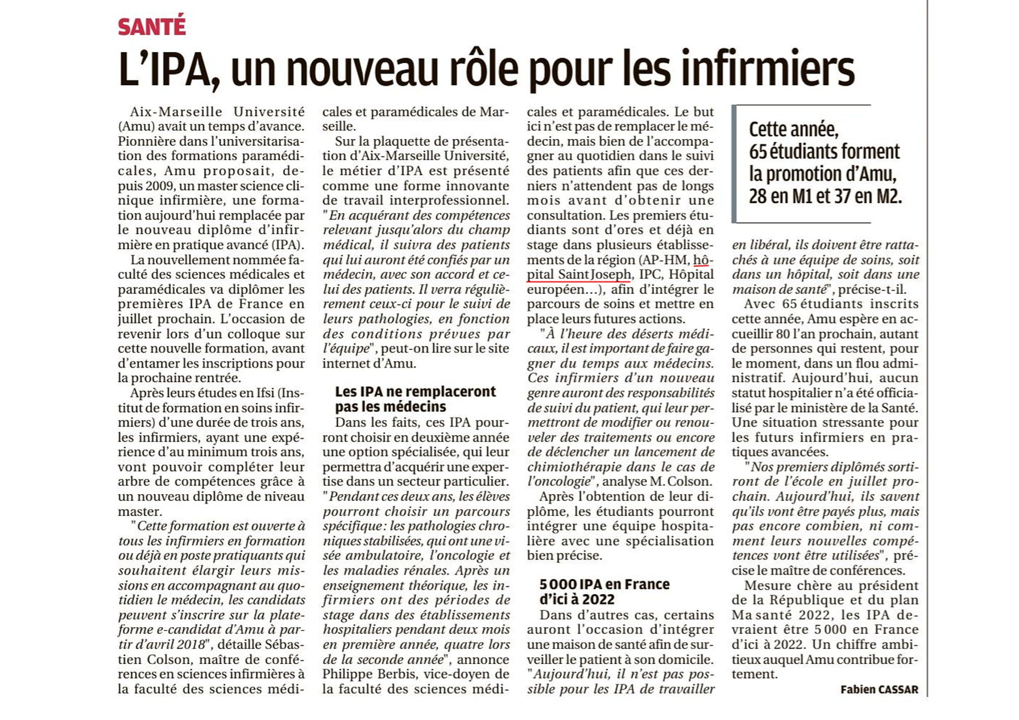 La Provence, 09/03/2019 : L'IPA, un nouveau rôle pour les infirmiers La Provence, 09/03/2019 : L'IPA, un nouveau rôle pour les infirmiers (677.0 Ko)
