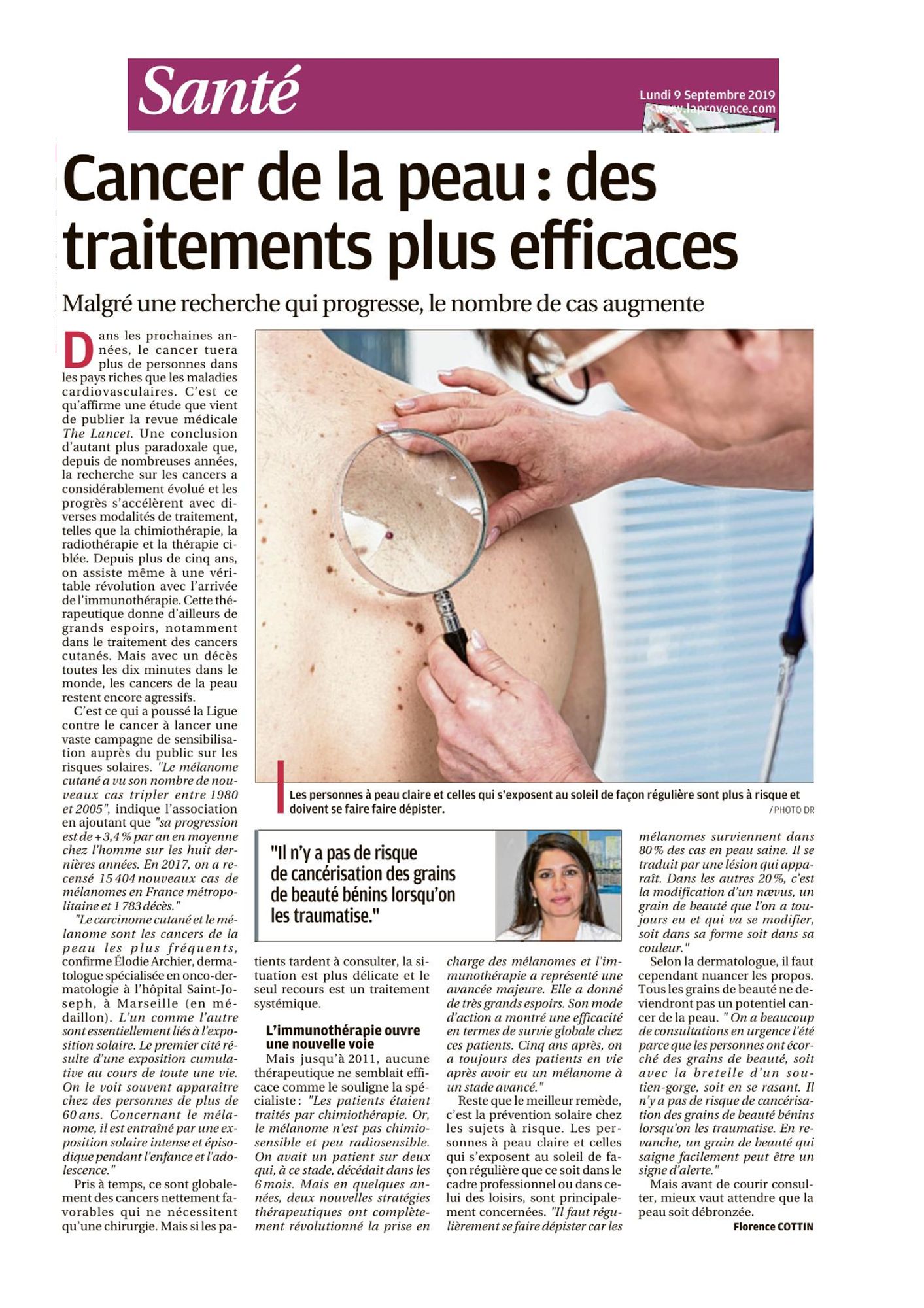 La Provence, 09/09/2019 : Cancer de la peau : des traitements plus efficaces LaProvence, 09/09/2019 : Cancer de la peau : des traitements plus efficaces (2.5 Mo)