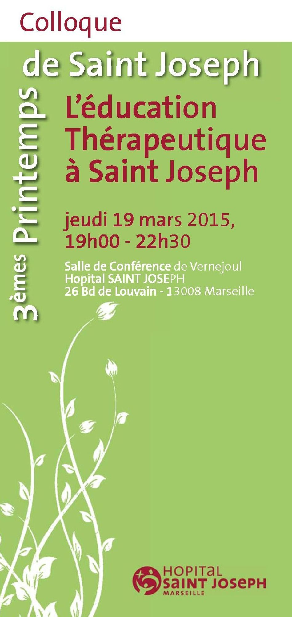 Jeudi 19 Mars 2015 - 3èmes Printemps de Saint Joseph " L'éducation thérapeutique à Saint Joseph "