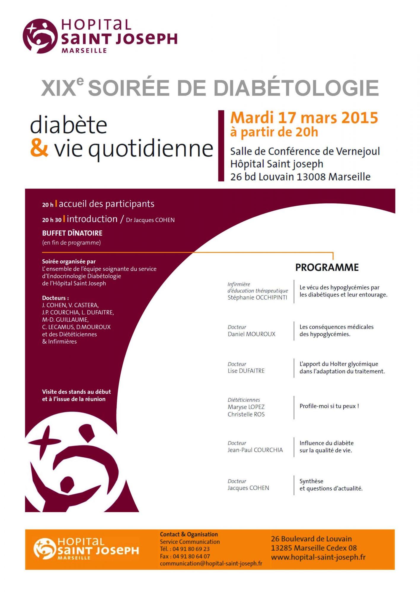 Le service d'Endocrinologie-Diabétologie de l'Hôpital Saint Joseph organise sa soirée annuelle. Le thème retenu pour cette XIXème édition : " Diabète & vie quotidienne "