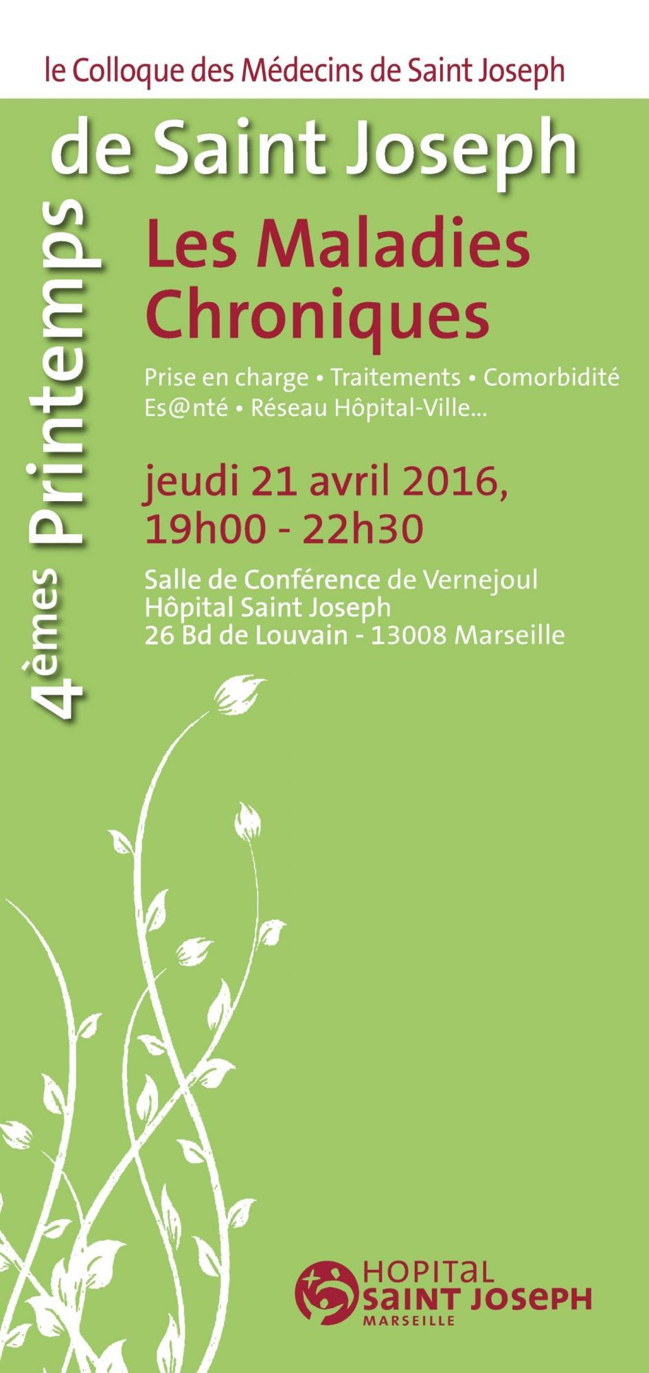 Jeudi 21 avril 2016: Nouvelle édition des Printemps de Saint Joseph autour du thème "Les maladies chroniques"
