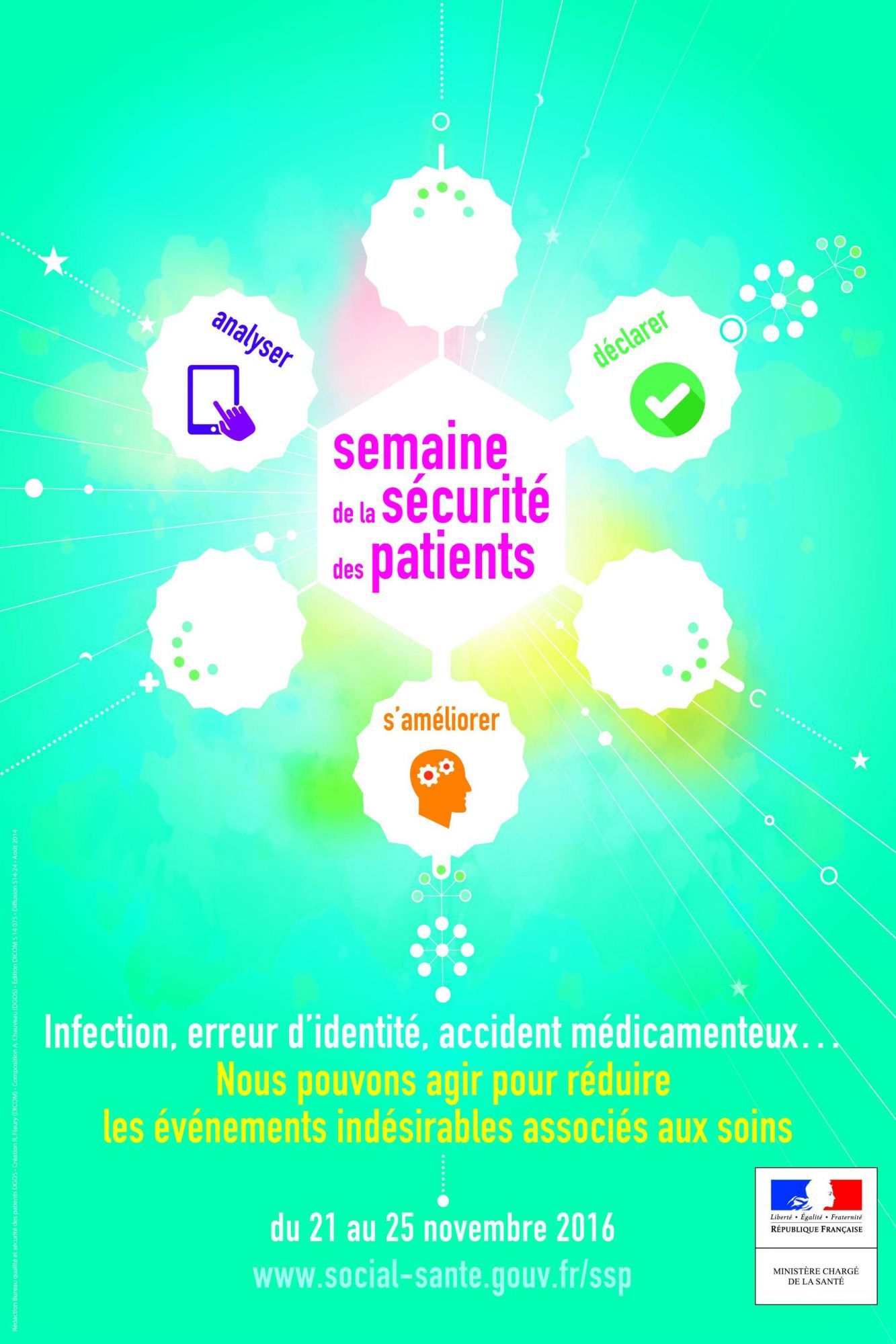 Cette campagne annuelle est menée dans le cadre du programme national pour la sécurité des patients (PNSP) du Ministère des affaires sociales et de la santé. Son objectif principal est de sensibiliser l’ensemble des publics sur les enjeux de la sécurité des soins et de favoriser le dialogue entre patients, usagers et professionnels de santé sur ces sujets.