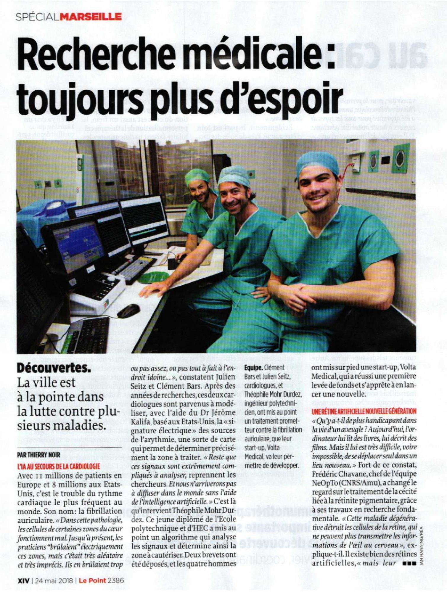Bel article du magazine LE POINT sur le travail du Dr Julien Seitz, coordonnateur de l'unité de Rythmologie (Fédération de Cardiologie) de l'Hôpital Saint Joseph, et du Dr Clément Bars, rythmologue !