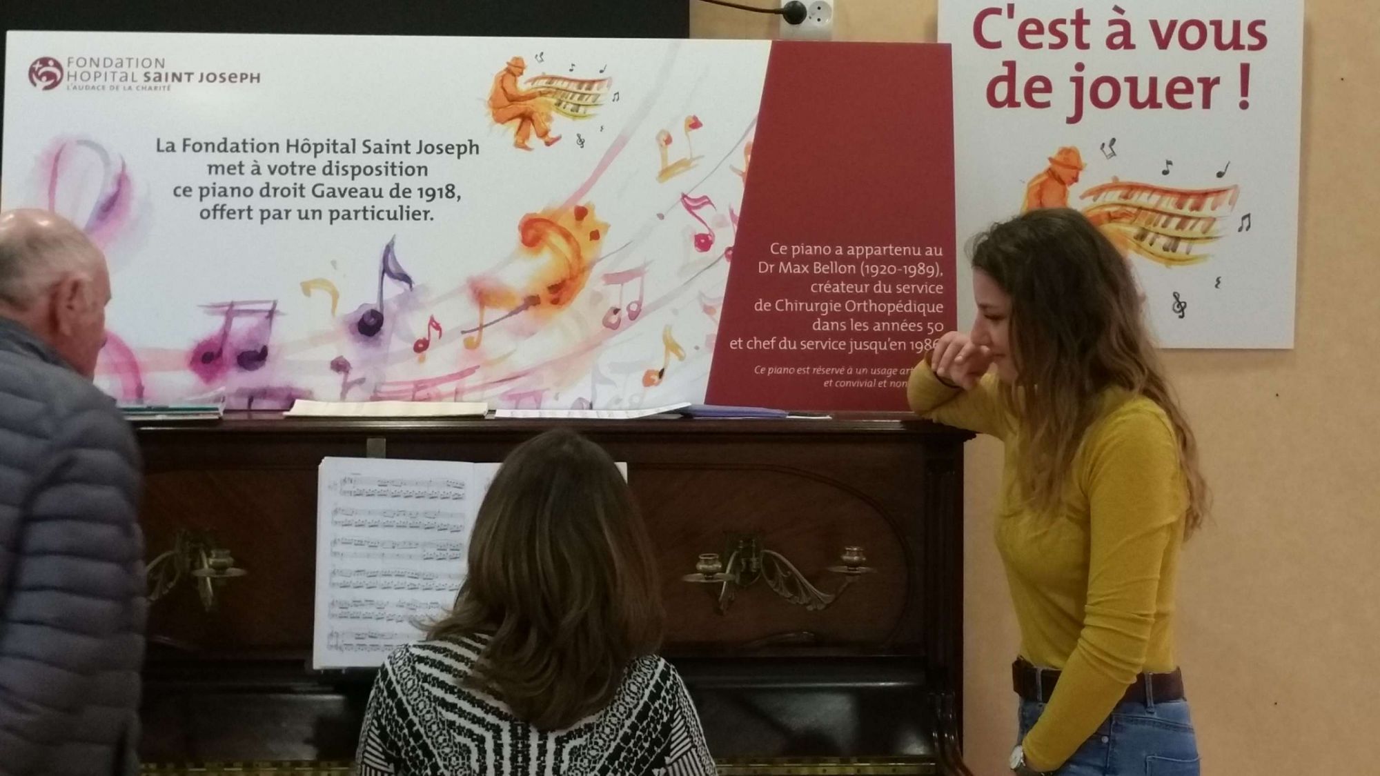 Dans le cadre du Projet Culturel de la Fondation Hôpital Saint Joseph, et grâce au généreux don d'une dame, un piano est à la disposition de tous, en libre accès dans le Hall de l'Hôpital depuis le 19 mars dernier. A vous de jouer !