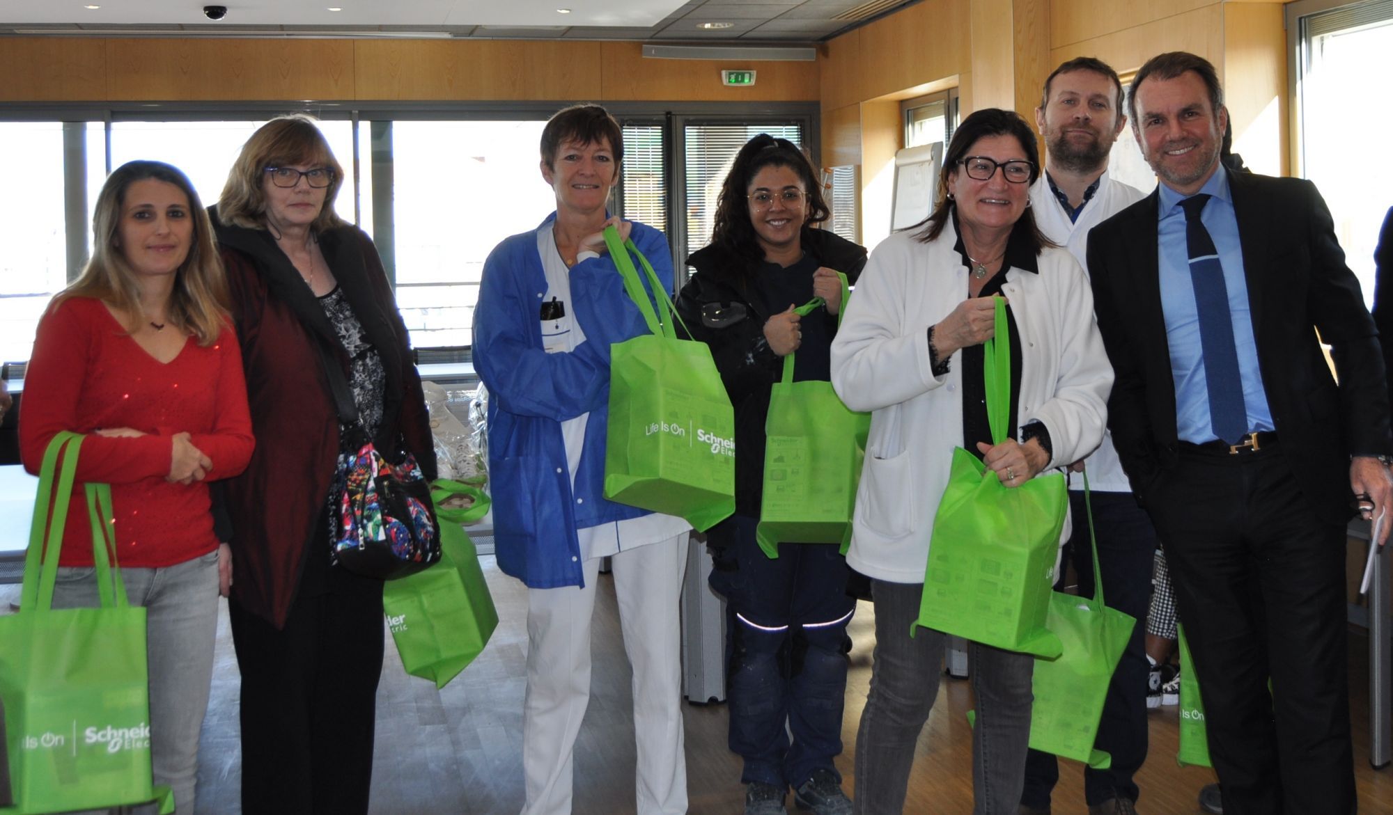 Le tirage au sort du quiz ISO 50001, certification sur le management de l’énergie, a permis de récompenser 8 personnels de l’Hôpital, qui, grâce aux sociétés Schneider et Expair, ont pu repartir avec une lampe solaire, 1 t-shirt ISO 50 001 et un pot de miel.