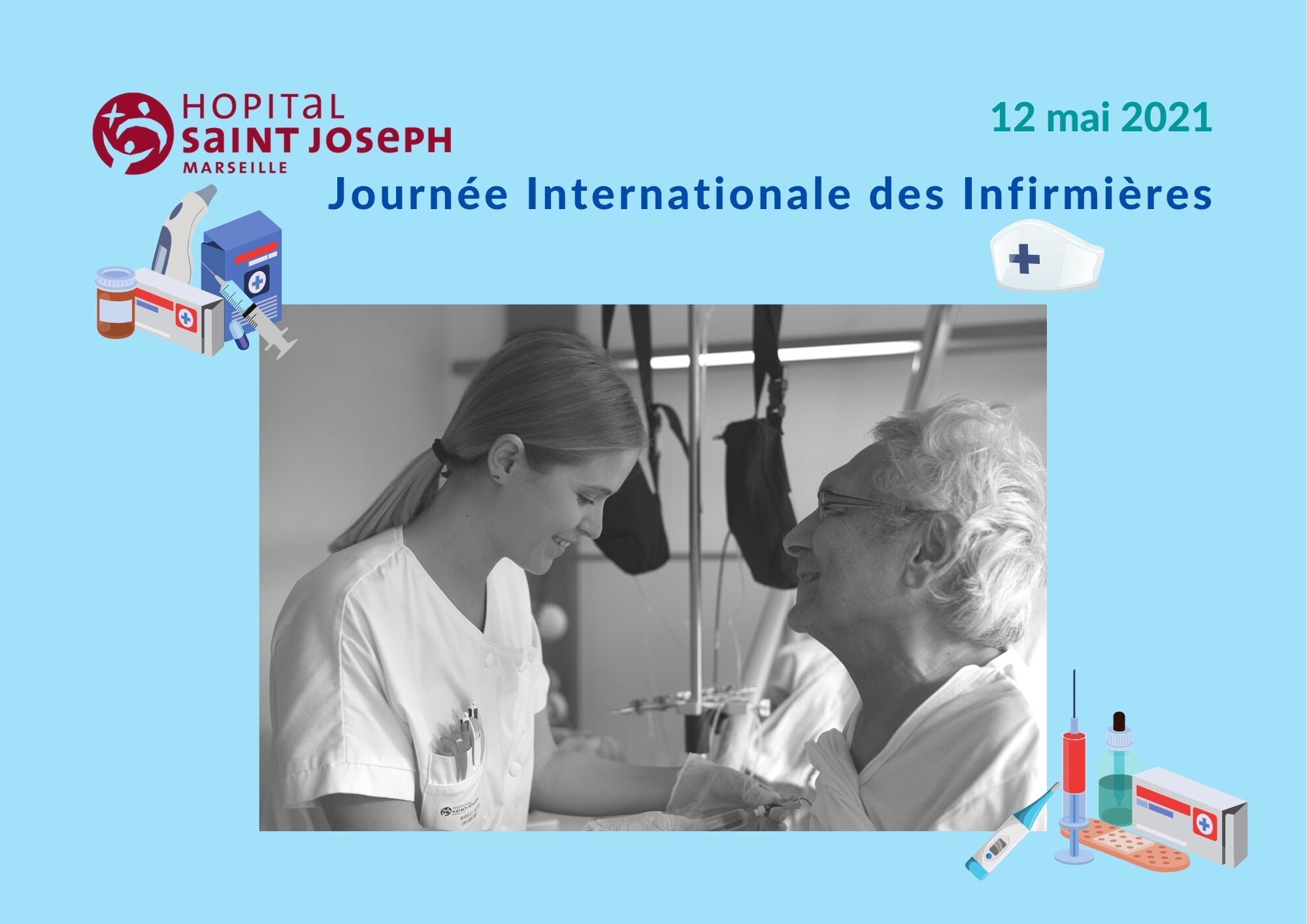 Hommage à toutes les infirmières et tous les infirmiers qui, chaque jour, soignent et mettent leurs compétences au service de nos patients dans l'ensemble des services de l'Hôpital.