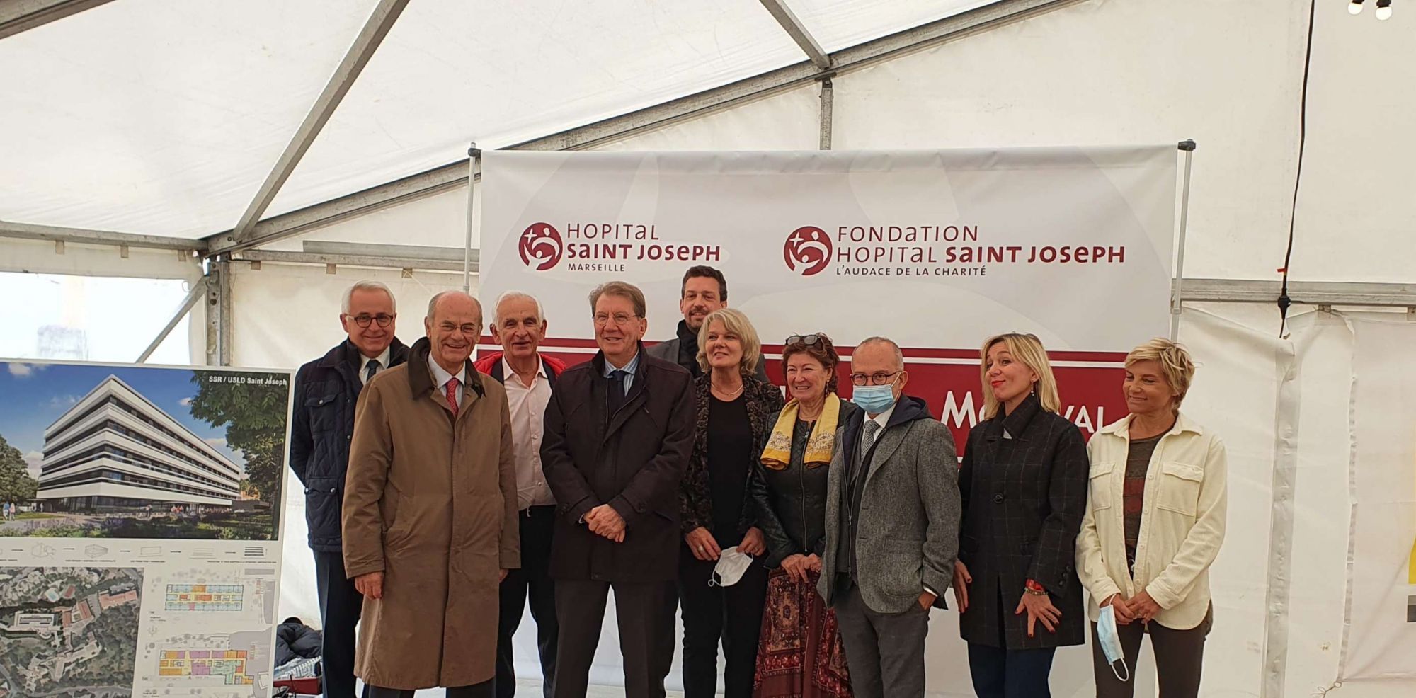 Lundi 15 novembre, Antoine Dubout, Président du Conseil d'Administration de l'Hôpital Saint Joseph, a réalisé la pose de la 1ère pierre du futur Hôpital Saint Joseph-Montval composé d'une Unité de Soins Longue Durée (USLD) et d'une Unité de Soins de suite et de Réadaptation (SSR), en présence d'officiels, du Conseil d'Administration, et de la Direction de l'Hôpital Saint Joseph.