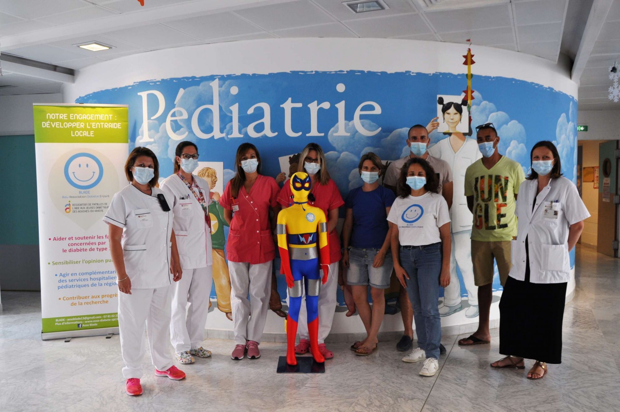 L'Association BLADE-Bleu Association Diabète Enfant est venue le 17 juin dernier pour remettre au service Pédiatrie de l'Hôpital un Super Didou, un mannequin super héros qui a pour rôle d'aider les jeunes diabétiques, et leurs parents, à se familiariser aux différents gestes liés au traitement du diabète. Cette poupée en mousse géante est un magnifique outil d'éducation thérapeutique pour nos petits patients. Merci à BLADE Association !