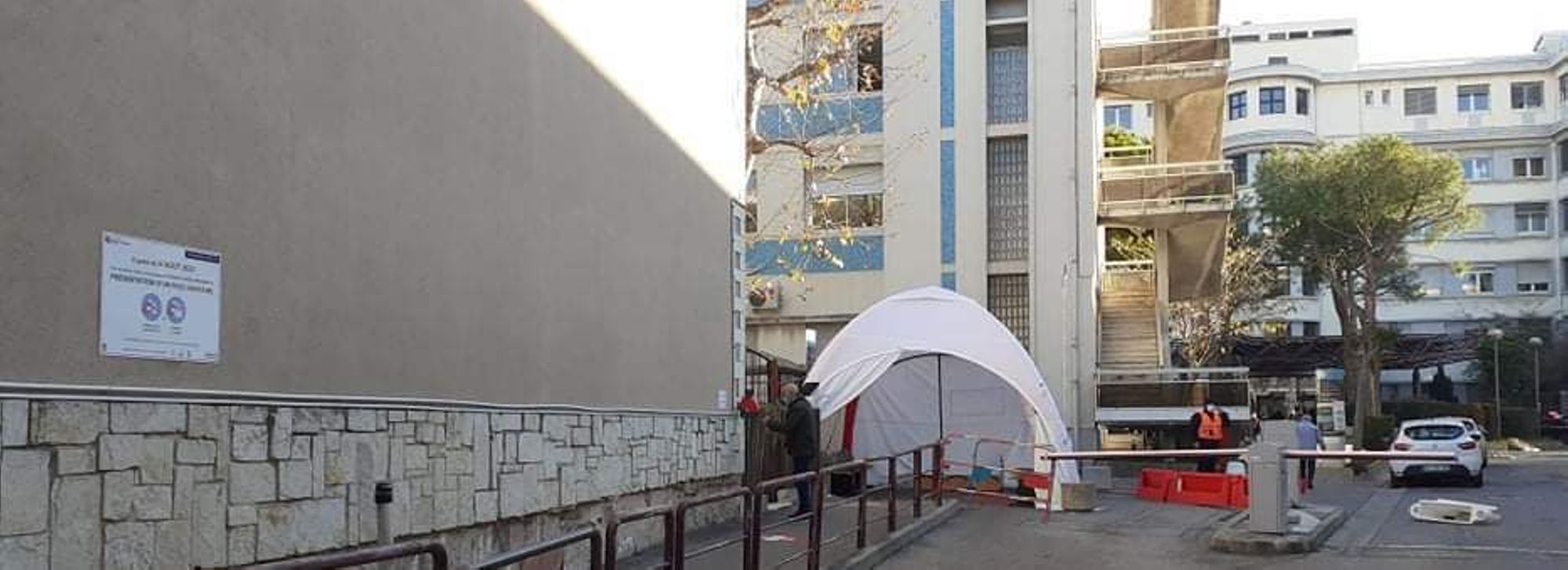 Le patient récupère son ticket d’ordre de passage en autonomie. Il attend ensuite dans une salle d’attente en extérieur sous tente (et non plus totalement à l’extérieur).