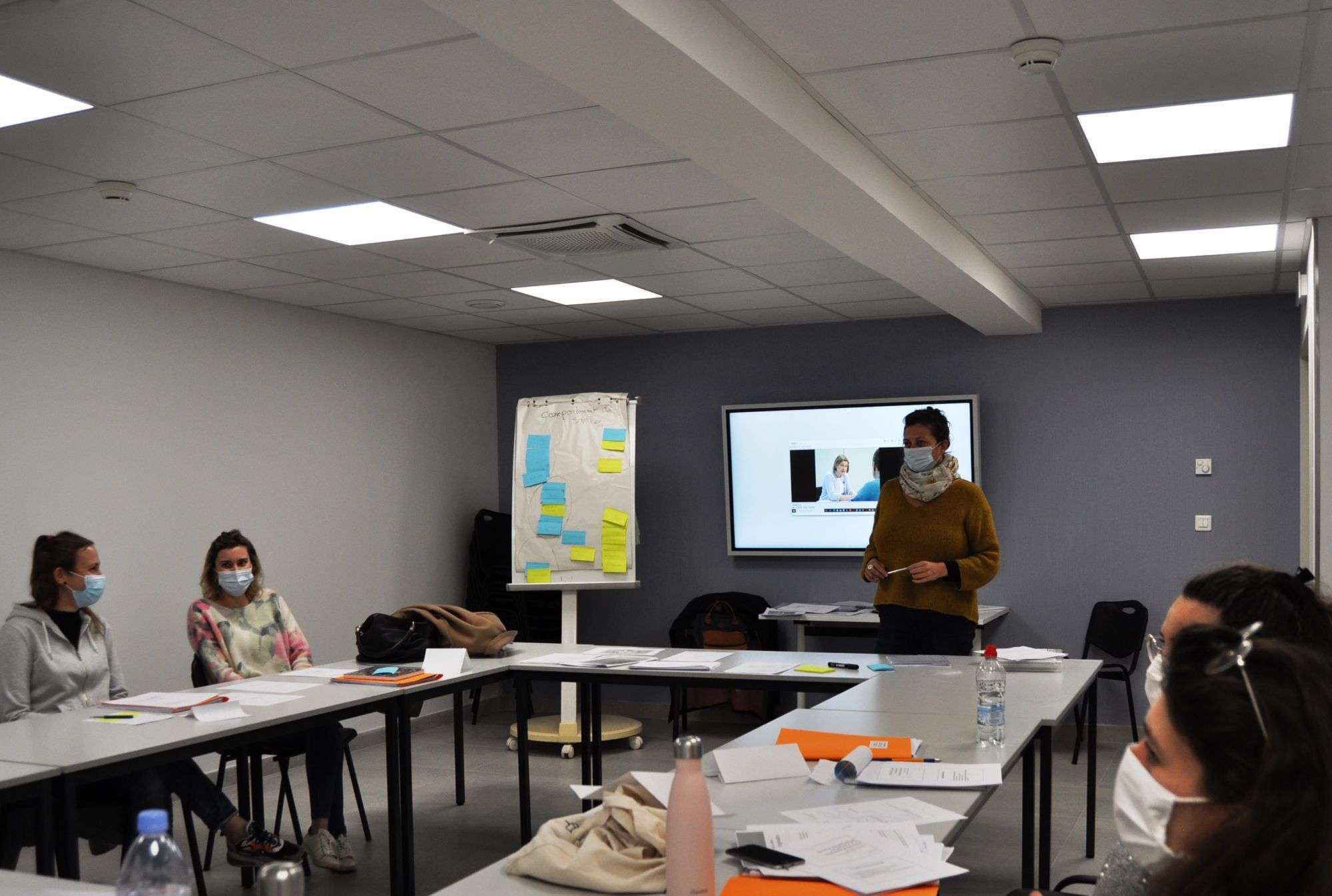 C’est Romain Martel, Chargé de projet, et Thomas Libert, conducteur de travaux, qui ont mené à bien la rénovation de ce plateau comprenant 10 salles de formation -dont une salle de conférence- entièrement équipées technologiquement (écrans interactifs, possibilités de visioconférence) pour permettre des formations théoriques, mais aussi pratiques, grâce à un centre de simulation médicale en santé. Toutes les technologies sont réunies pour permettre aux professionnels de se former aux dernières techniques médicales ou pour toute autre formation à destination des professionnels du secteur de la santé.