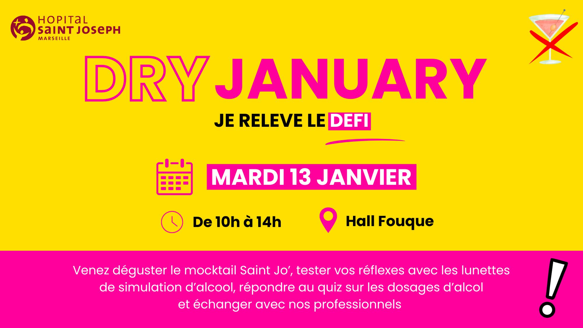 A VENIR : Mardi 13 janvier : Dry January à l’Hôpital Saint Joseph