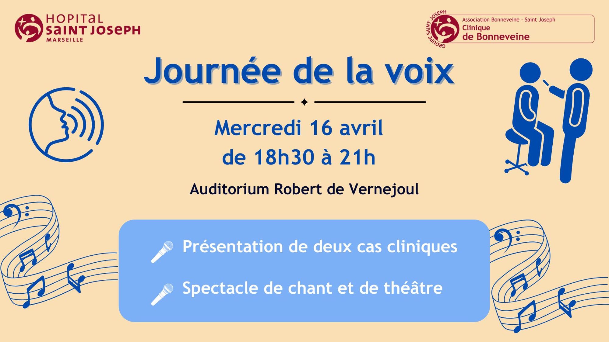 Après ce mini congrès d’information médicale, un spectacle convivial aura lieu. Des patients chanteront en chœur et participeront à des scènes de théâtre, accompagnés au piano, tandis que les thérapeutes interpréteront des morceaux allant de la variété au lyrique. Cette manifestation, d’une durée de 2h30, promet un moment de partage, de réflexion et de célébration de la voix sous toutes ses formes.