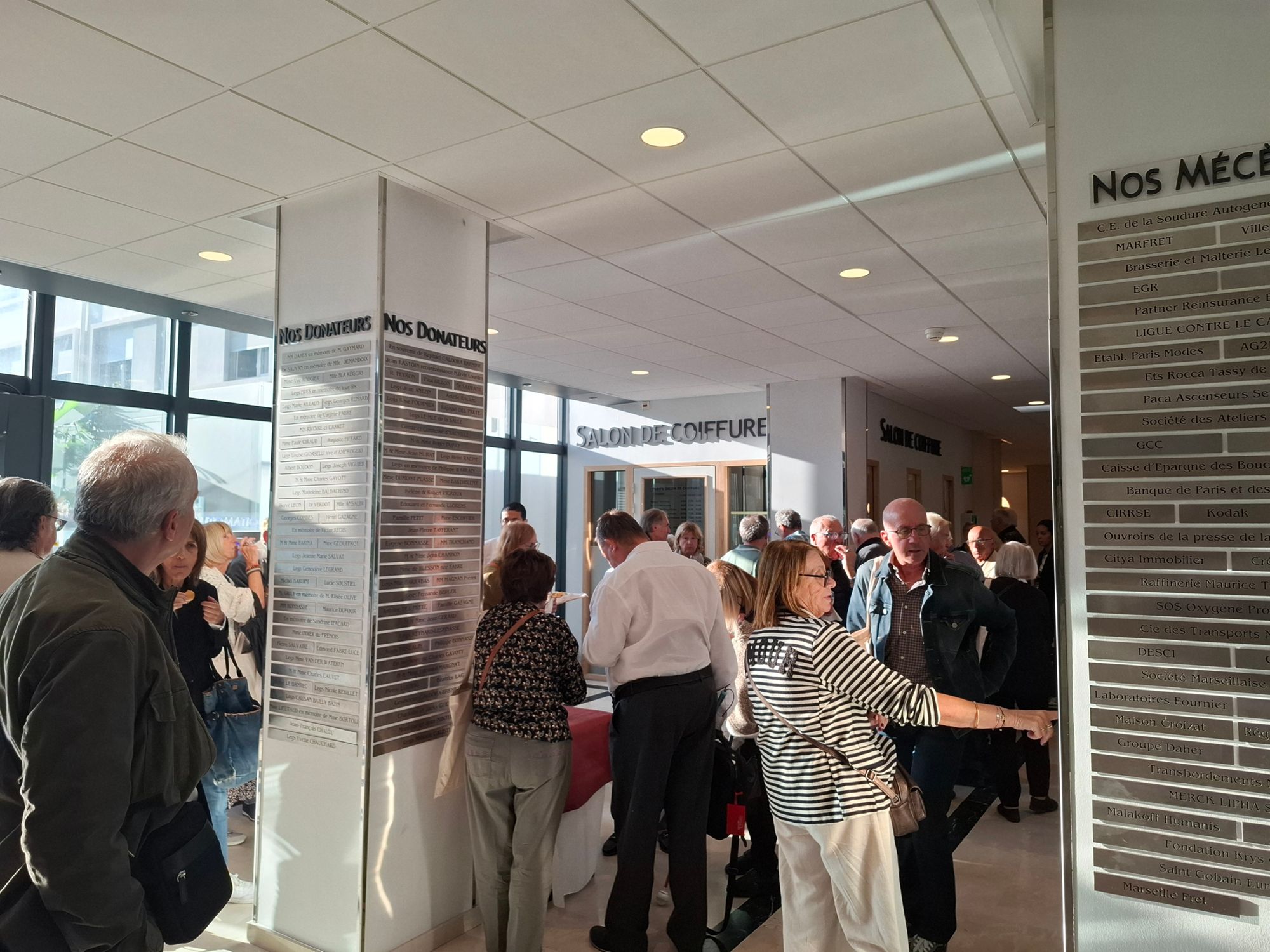 Les donateurs ont également eu l’occasion de découvrir l’un des nouveaux bâtiments de l’Hôpital dont la réalisation a pu être possible grâce à leur soutien, et quelques-uns des projets d’aujourd’hui ou de demain à soutenir : le projet de recherche médicale sur le traitement de la DMLA, la réalisation d’une deuxième salle hybride, et les soins de supports en Oncologie pour apporter un confort pour les patients atteints de cancer.