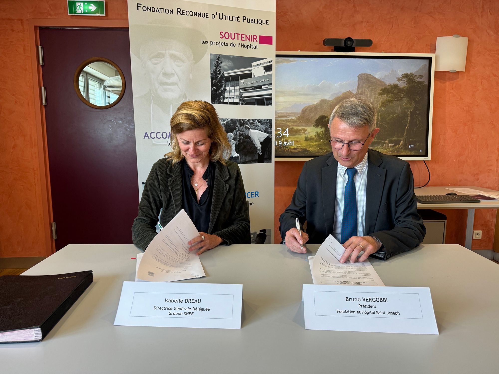 Il y a quelques semaines, Isabelle Dréau, Directrice Générale du Groupe SNEF et Bruno Vergobbi, Président de la Fondation Hôpital Saint Joseph ont signé une convention de mécénat, permettant le financement des travaux d’une nouvelle salle hybride au bloc opératoire.