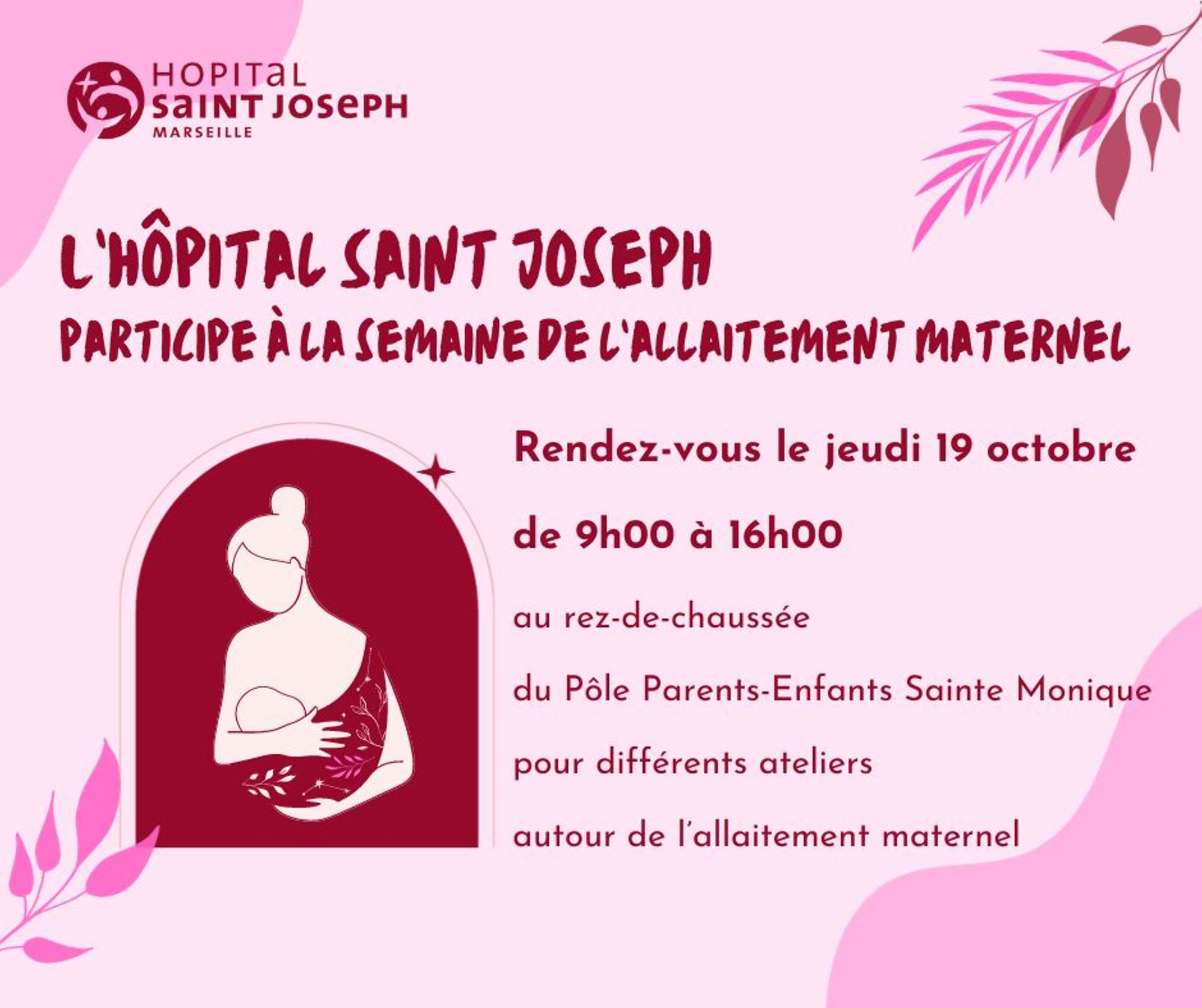 A l’occasion de la Semaine mondiale de l’allaitement maternel, les consultantes en lactation du Pôle Parents-Enfants Sainte Monique vous proposent de venir à leur rencontre pour vous renseigner et pour participer à des ateliers autour de l’allaitement maternel.