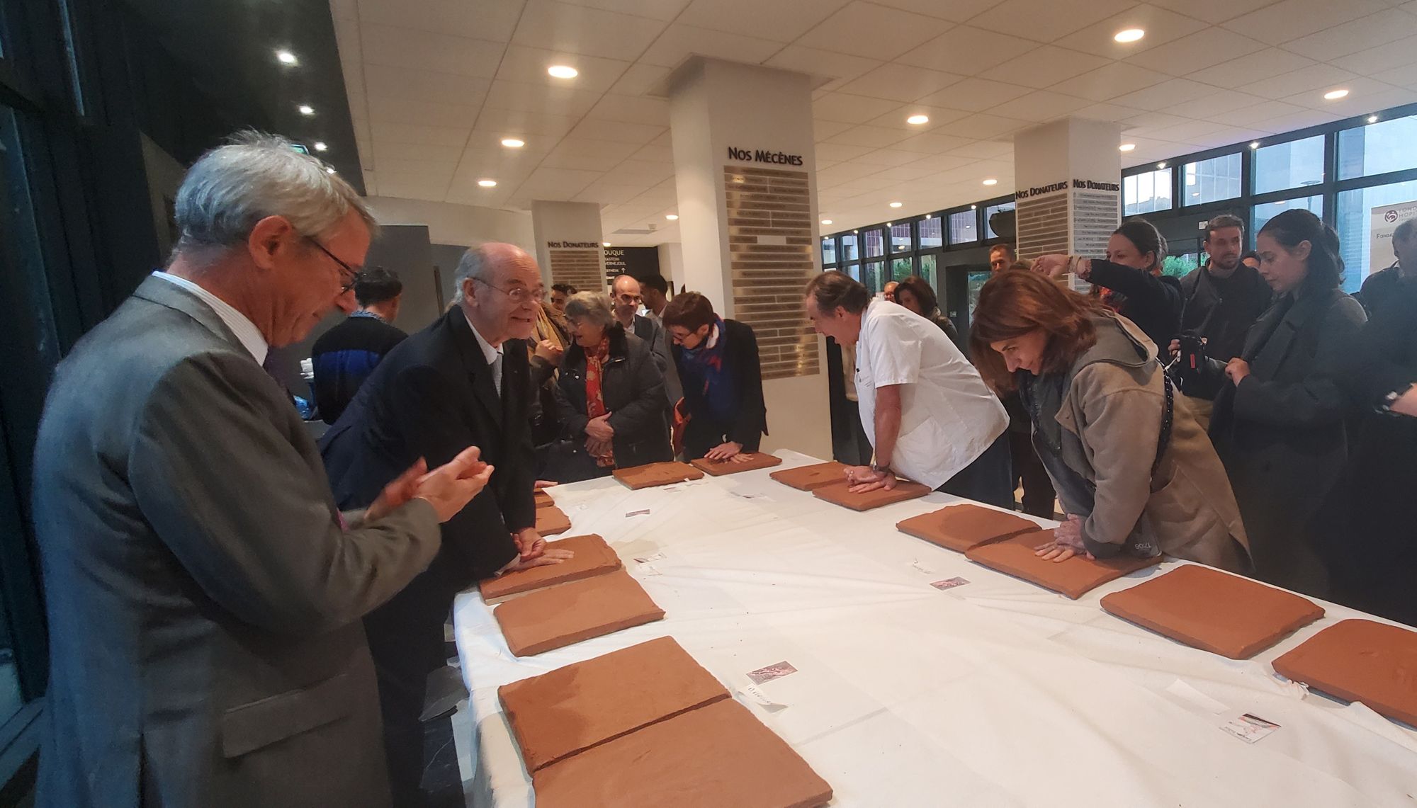 Pour immortaliser cette célébration, une empreinte d’une main de chacune des personnalités présentes a été réalisée. Laetitia Follot, artiste céramiste, et Fanny Rousseau, illustratrice-graphiste, vont réaliser par la suite une œuvre qui prendra place dans le hall de l‘un des deux bâtiments en cours de construction, mettant en scène ces moulages.