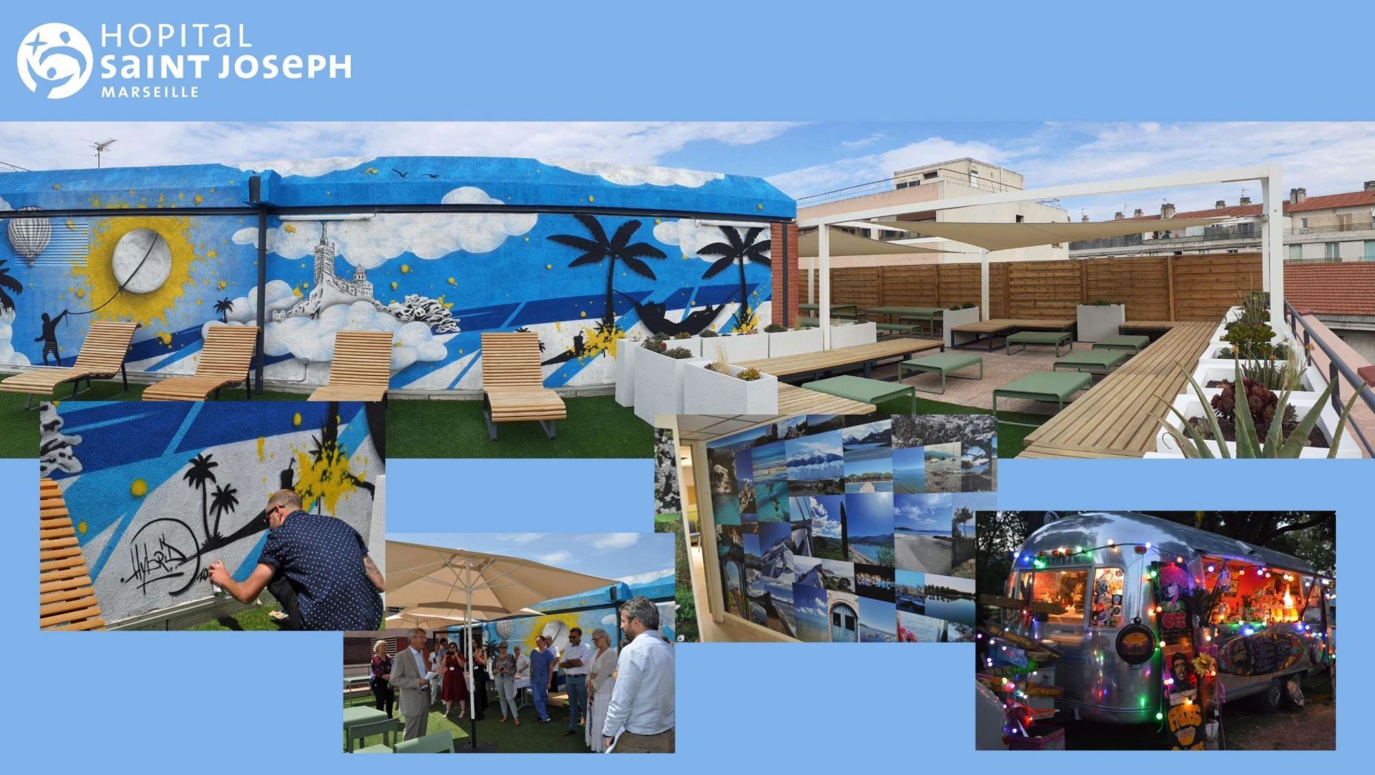 Un espace de détente, de repos et de convivialité de 100 m2 en extérieur réservé aux professionnels de l'Hôpital a été aménagé sur le toit du Bâtiment Saint Pierre, entre ombre et lumière. Il a été officiellement inauguré le 27 juin, en présence des personnels, mécènes et donateurs qui ont permis cette belle réalisation.