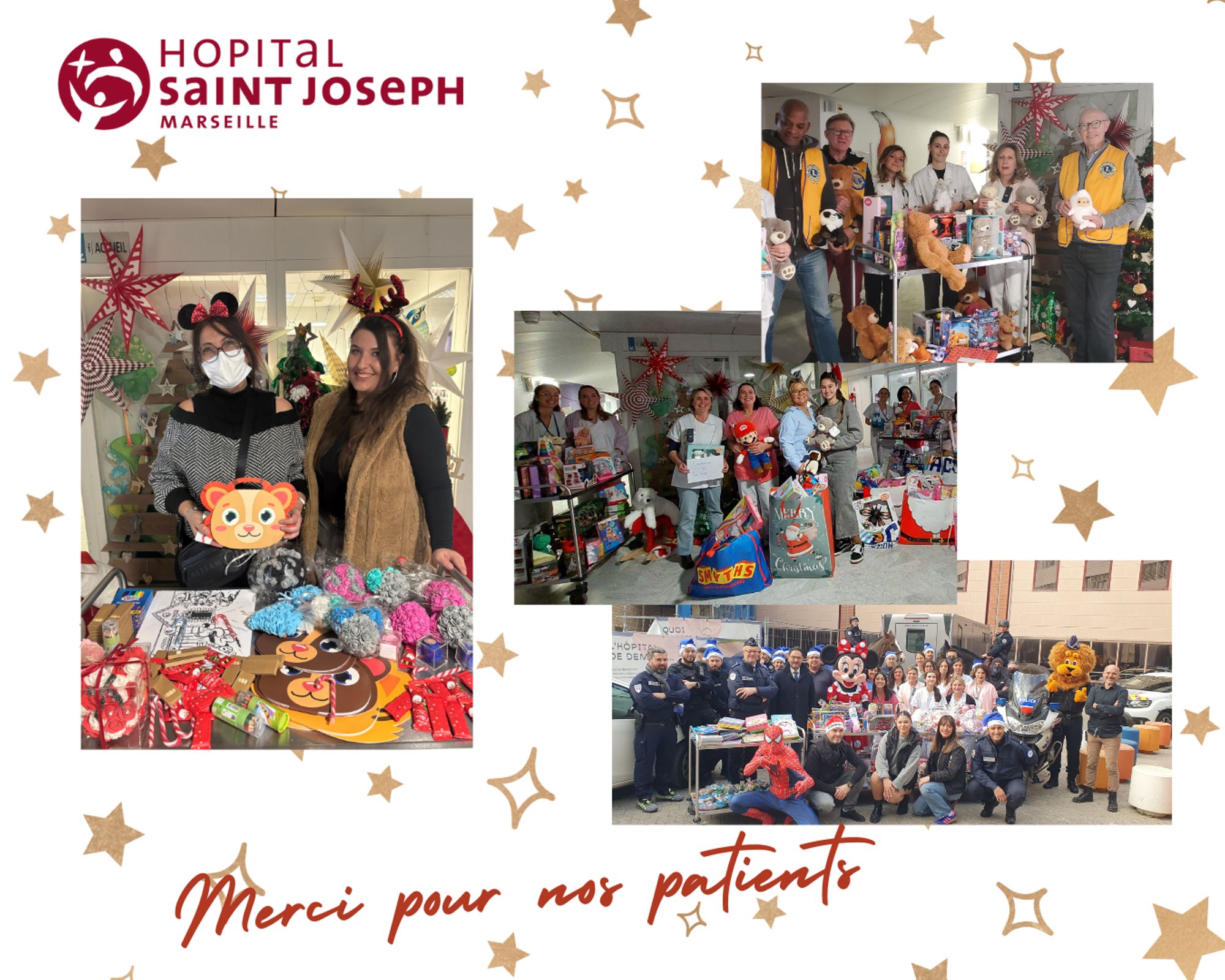 Le Rotary, le Lions Club Marseille, l’association Un Cadeau Pour la Vie, l’association Partenaires Police 13, l’association A Cœur Ouvert, et l’agence immobilière Le Comptoir de l’Immobilier ont montré toute leur générosité en amenant de nombreux cadeaux aux service Pédiatrie, Chirurgie Pédiatrique, Médecine Néonatale, et Cardiologie afin que les patients passant Noël à l’Hôpital bénéficient de l’esprit de Noël. Un grand merci à eux.