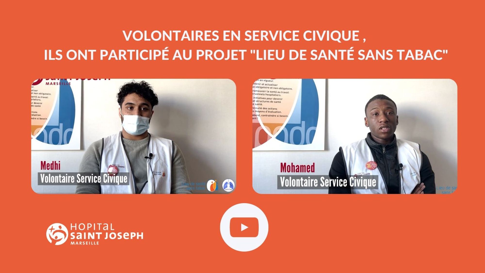 Découvrez les témoignages de Medhi et Mohamed, Volontaires en Service Civique, engagés durant plusieurs mois dans la démarche Lieu de Santé Sans Tabac à l’Hôpital Saint Joseph. Leur mission ? Sensibiliser contre les dangers du tabac et informer les personnes sur les différents dispositifs d’accompagnement à l’arrêt du tabac mis en place à Saint Joseph.