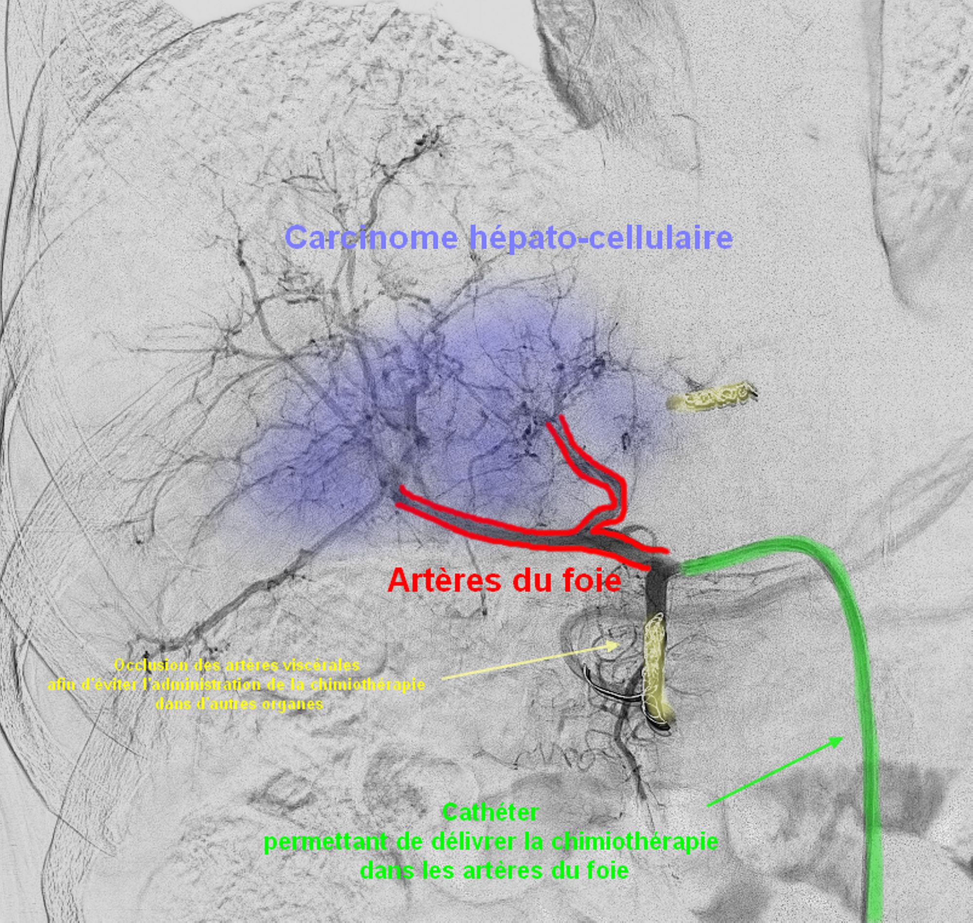 Ce traitement permet de délivrer une forte dose de chimiothérapie par son administration continue, augmentant ainsi le temps d’exposition des cytotoxiques, tout en supprimant les complications potentielles liées à l’embolisation. Ce traitement s’adresse à des patients souffrant d’un cancer du foie avancé, avec une évolution intra-hépatique et une hypervascularisation, de fréquentes récidives et une impossibilité opératoire.