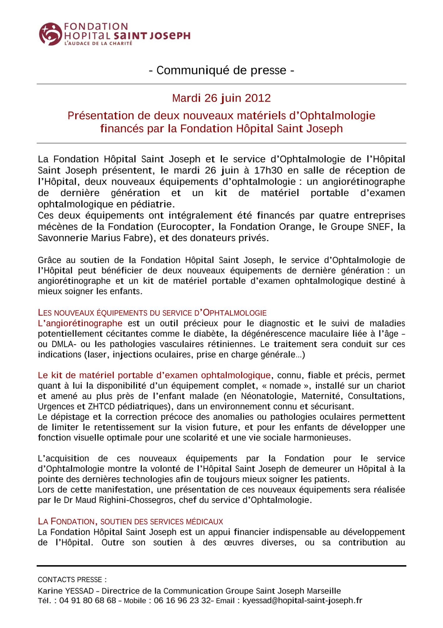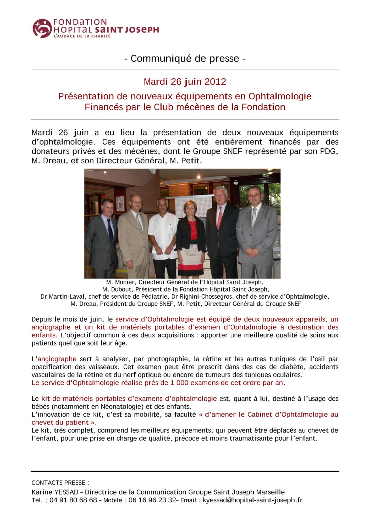 Présentation de deux nouveaux matériels d'Ophtalmologie financés par la Fondation Hôpital Saint Joseph - Jeudi 24 mai 2012 :
