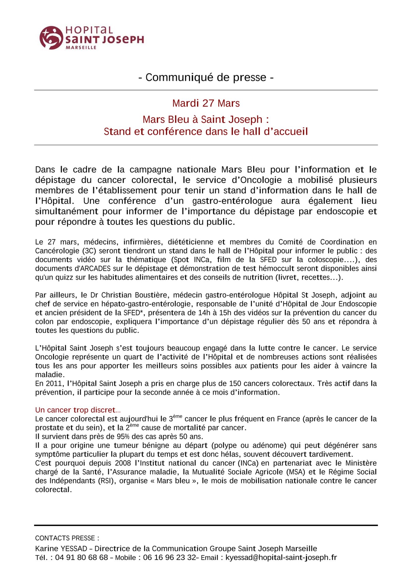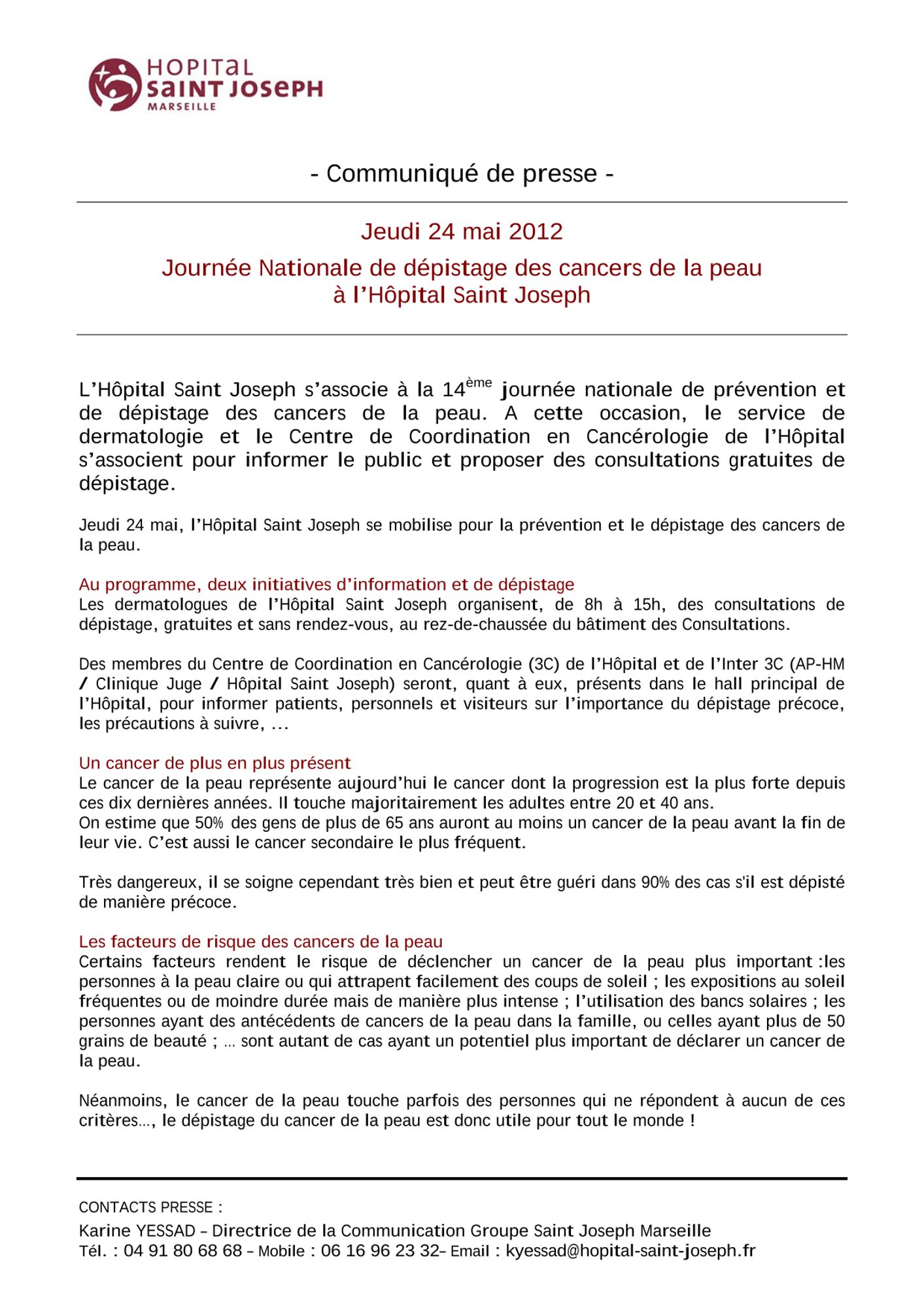 Journée de dépistage du cancer de la peau à l’Hôpital Saint Joseph - Mercredi 18 avril 2012 :