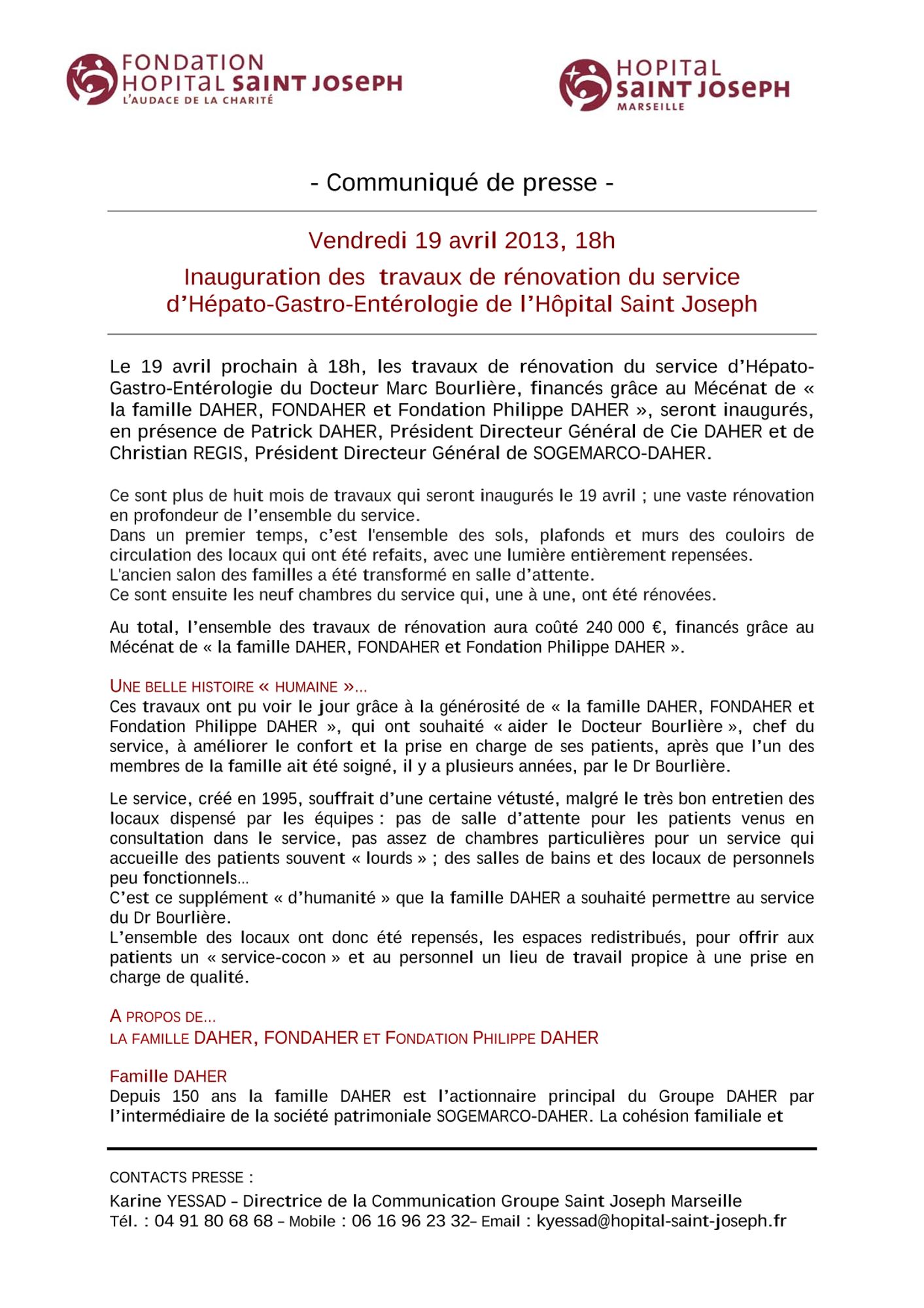 Inauguration des travaux de rénovation du service d'Hépato-Gastro-Entérologie de l'Hôpital Saint Joseph - 10 avril 2013 :