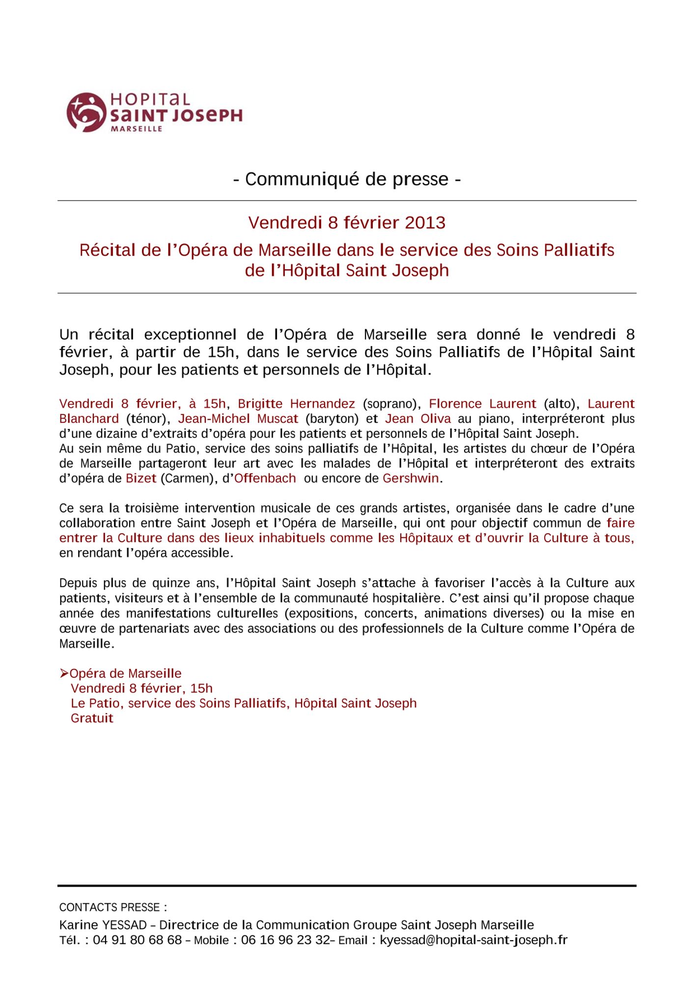 Récital de l'opéra de Marseille dans le service des Soins Palliatifs de l'Hôpital Saint Joseph