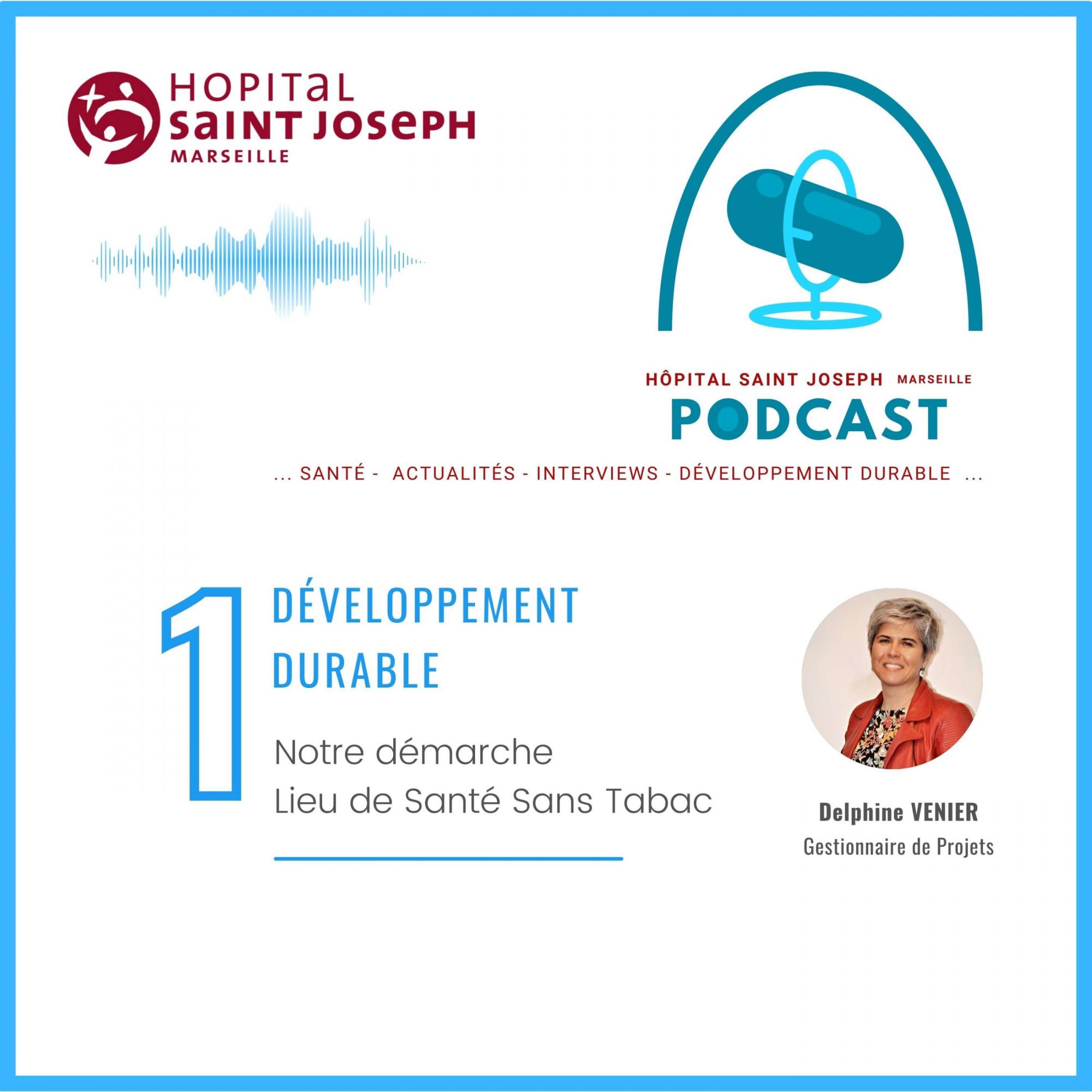 Delphine Venier, Gestionnaire des projets et Référente Développement Durable de l'Hôpital Saint Joseph de Marseille, explique la démarche Lieu de Santé Sans Tabac de l'Hôpital Saint Joseph, qui vise à accompagner les patients, parents et futurs parents, et personnels de l'Hôpital vers le sevrage tabagique, et qui s'est fixée pour objectif de parvenir à terme à un Hôpital totalement sans tabac.