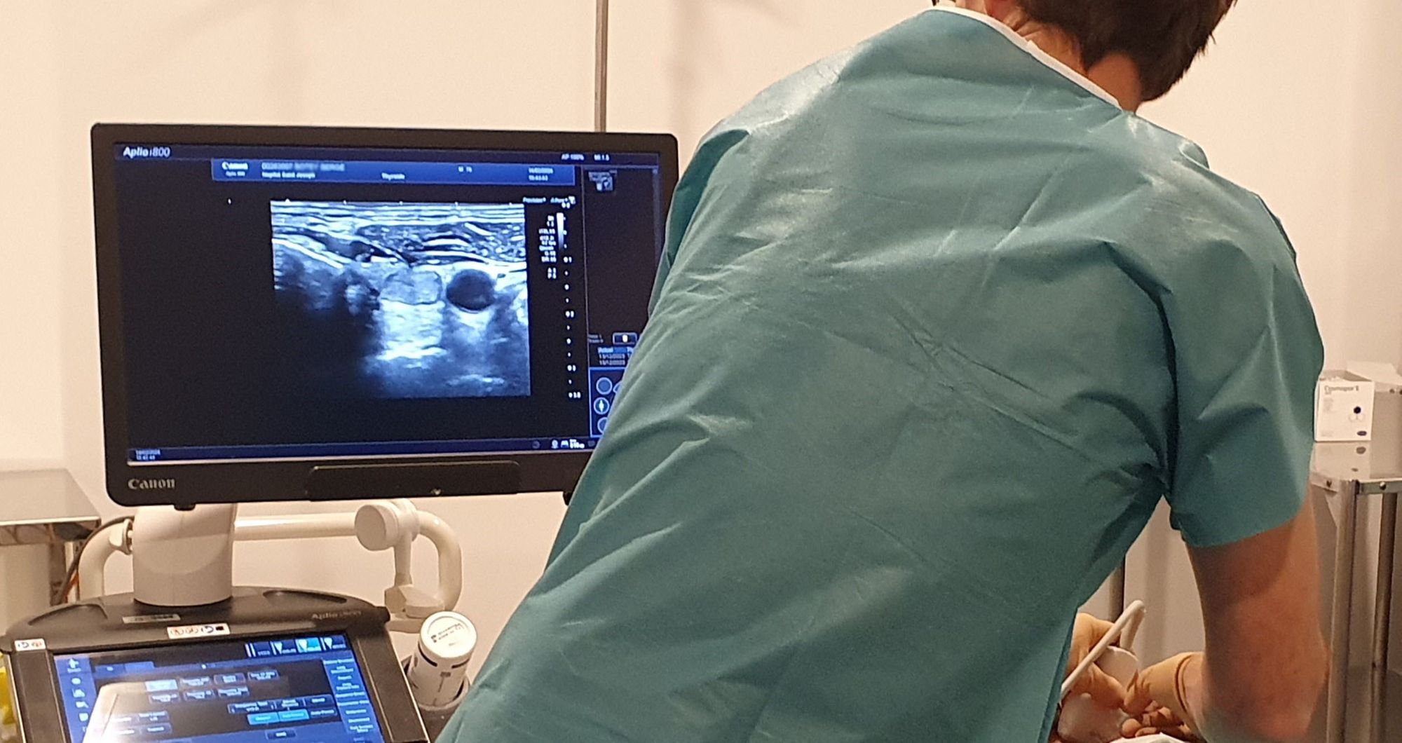 Notre unité d'échographie compte 3 salles d’échographies générales et spécialisées (pédiatrie, gynécologie , ostéo-articulaire…) équipées des échographes : CANON APPLIO i800 installés en décembre 2022.