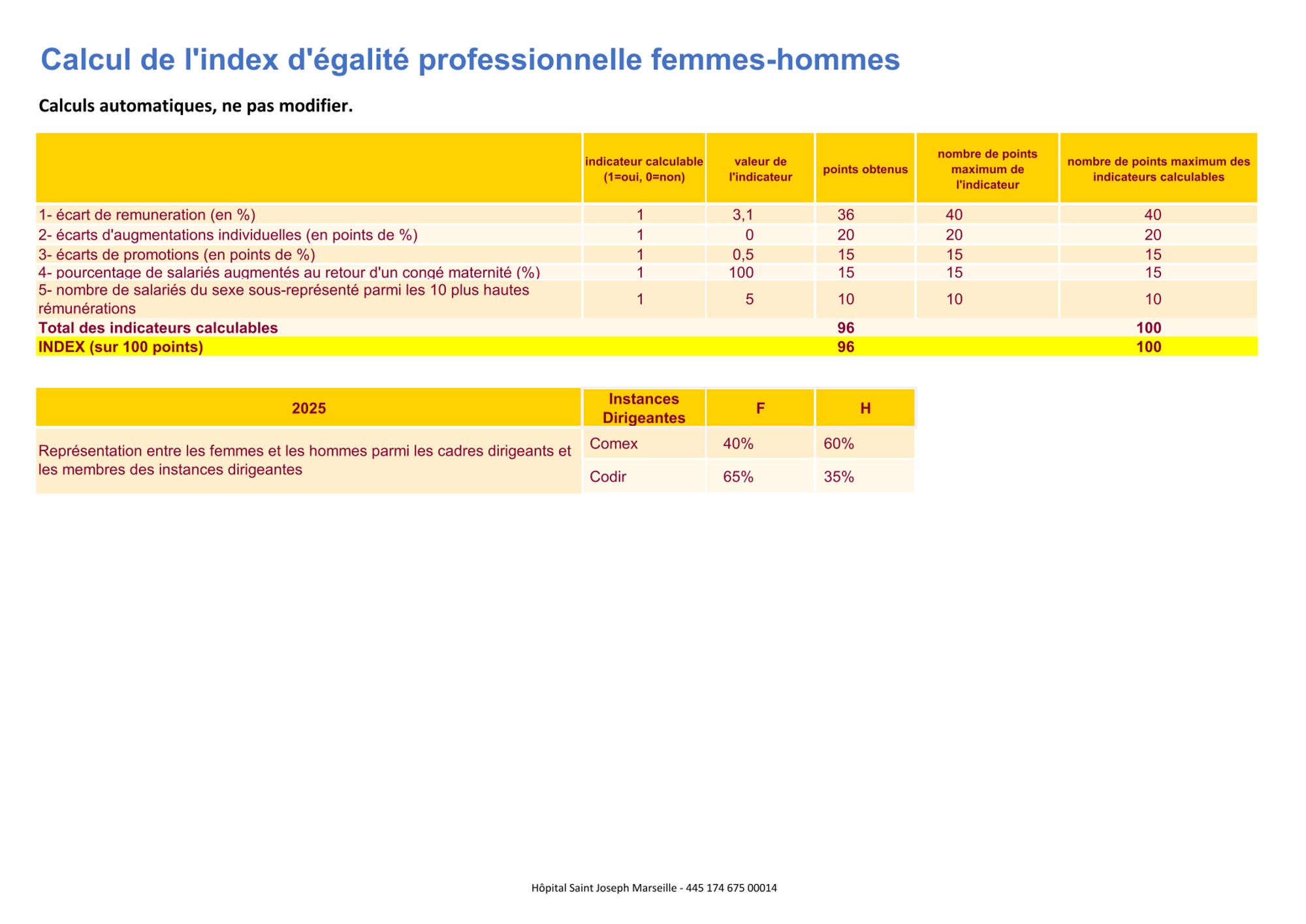 Conformément aux dispositions de la loi Avenir, visant à supprimer les écarts de rémunération entre les femmes et les hommes, l'Hôpital Saint Joseph publie son Index d'égalité femmes-hommes.