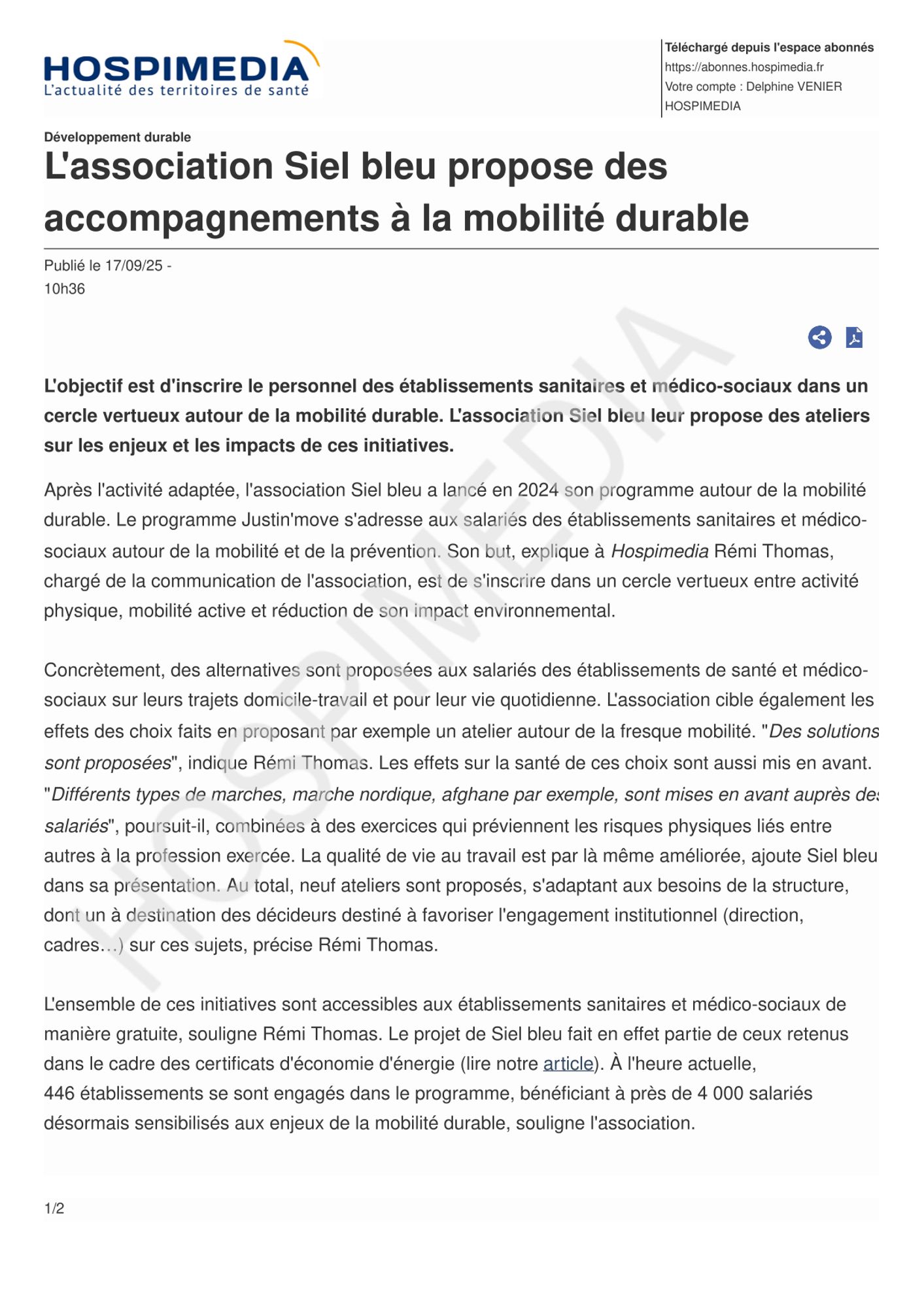 Retrouvez dans l'article Hospimédia ci-dessus une présentation de l'Association Siel.