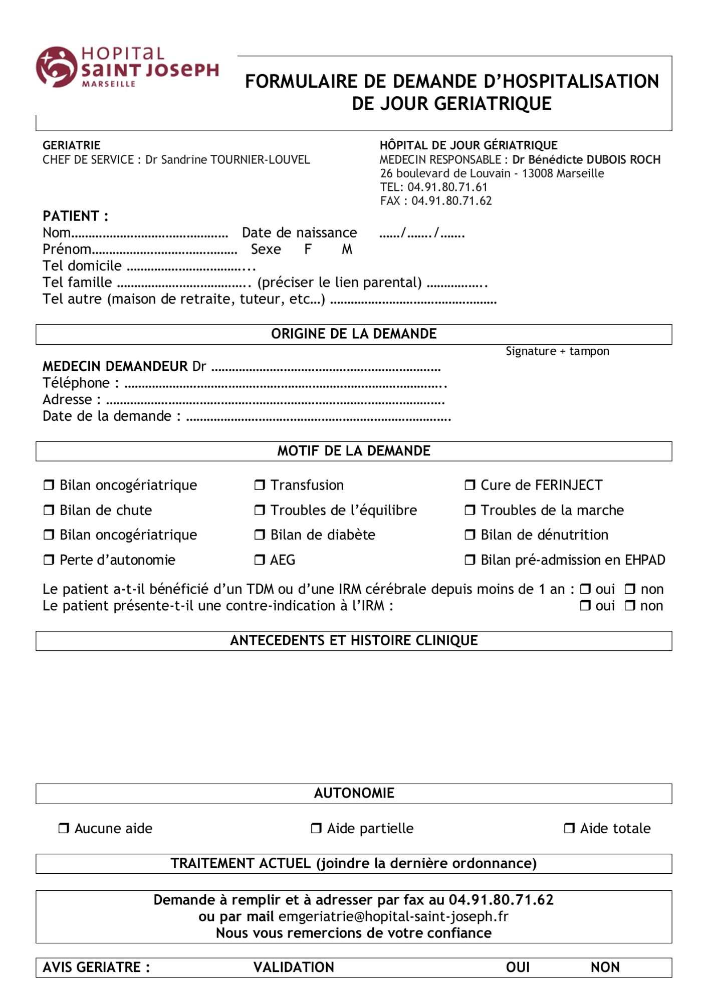 Chef de service : Dr Sandrine TOURNIER LOUVEL