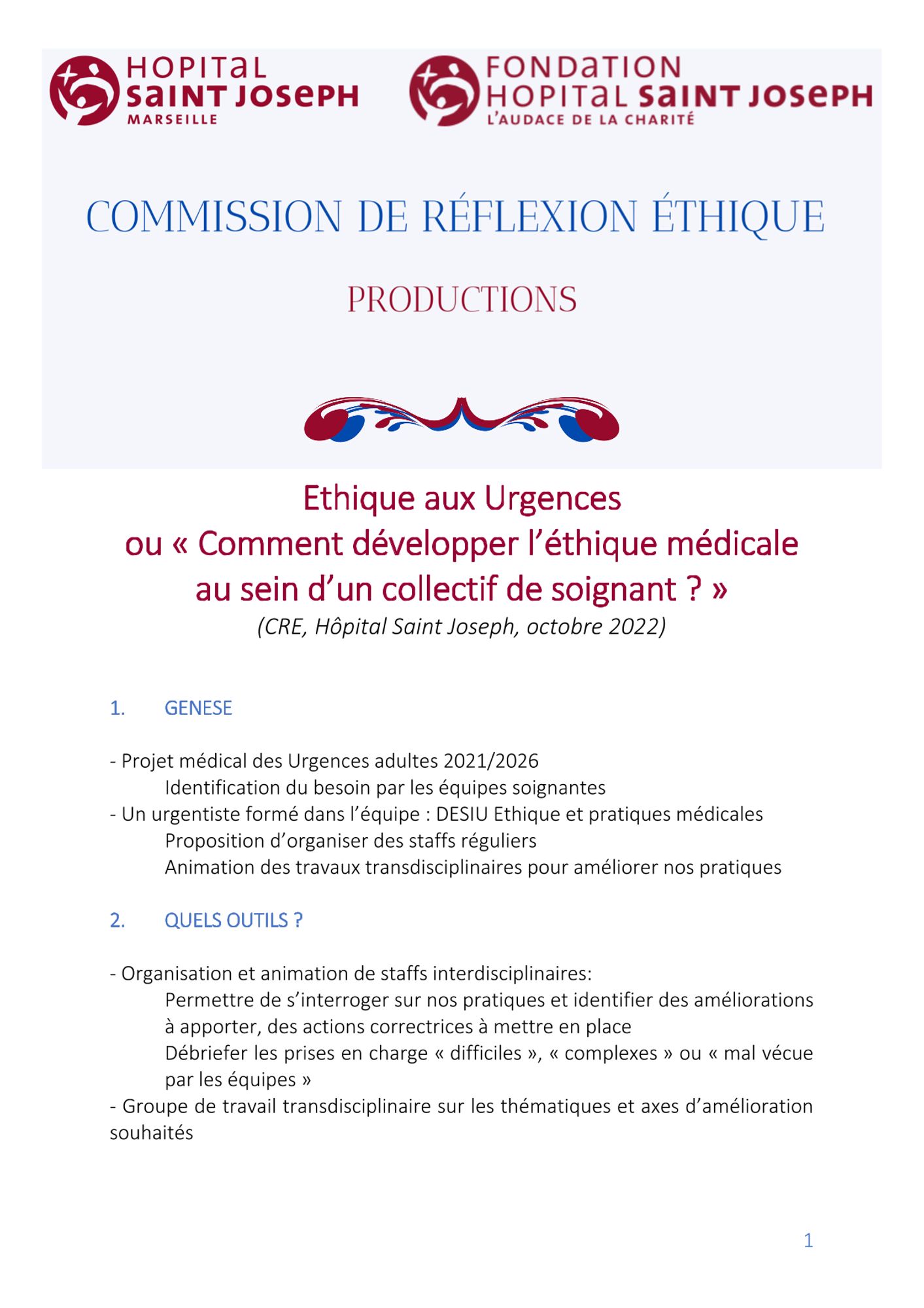 " Comment développer l'éthique médicale au sein d'un collectif de soignant ? ", par le Dr Olivier Maurin - Octobre 2022
