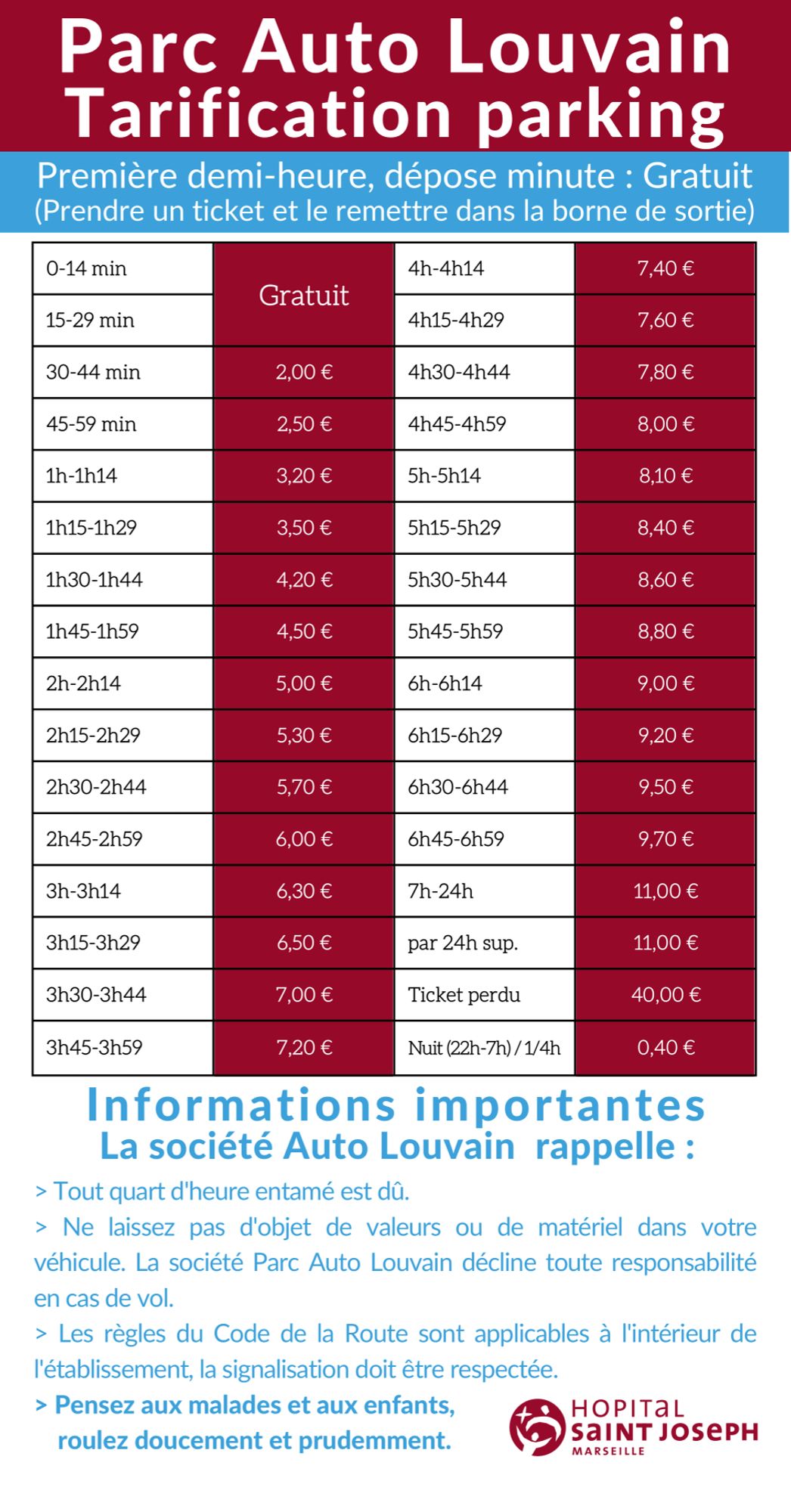 Vous trouverez dans l'enceinte de l'Hôpital un parking ouvert au public (accessible au niveau du Pôle Parents-Enfants Sainte Monique - Traverse de l'Antignane/Boulevard Rabatau). Le nombre de places est limité. Il s’agit d’un service payant.