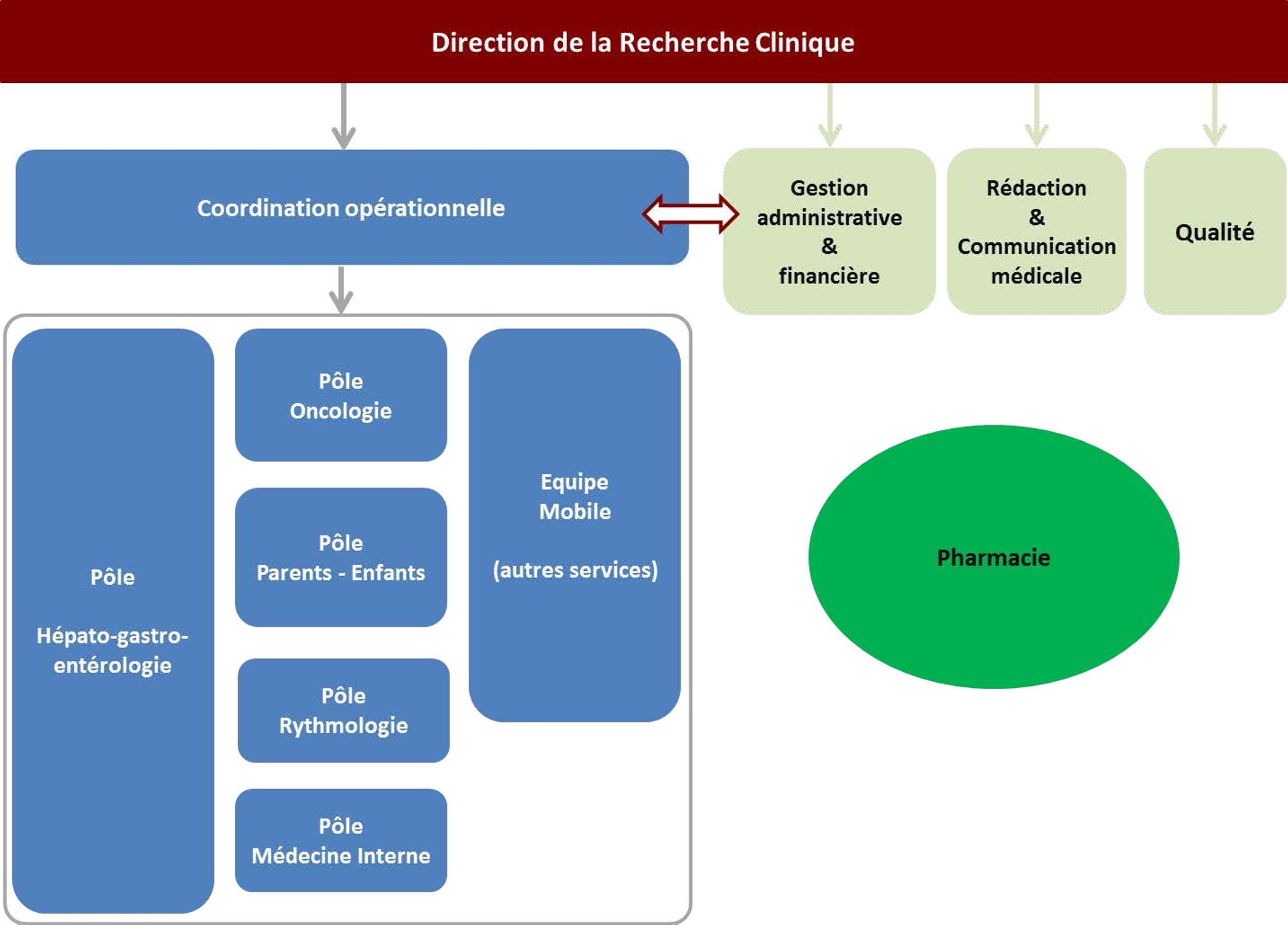 Ci-dessous, l'organigramme de la Recherche Clinique :