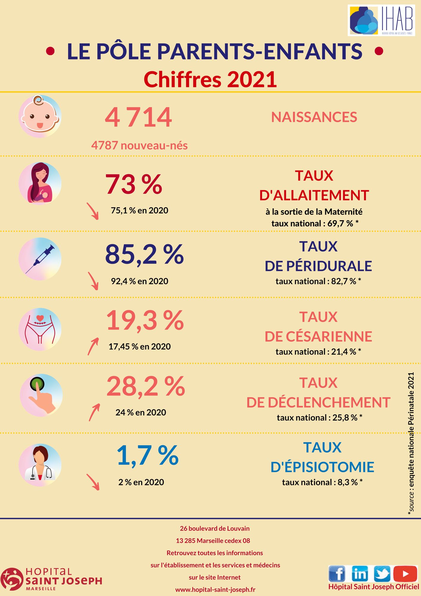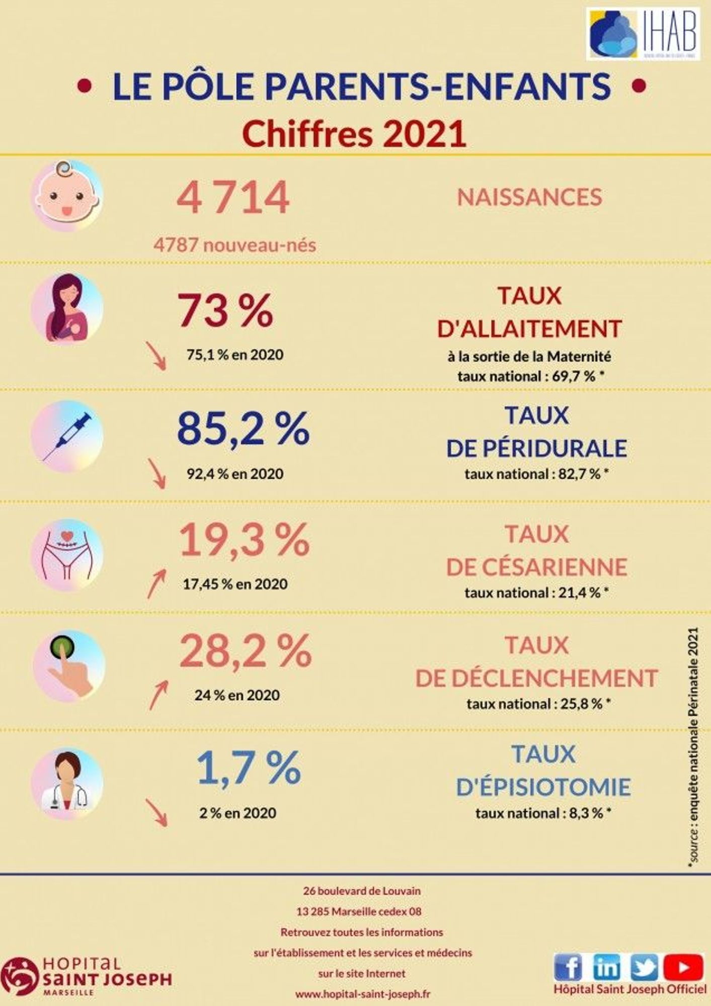 2021 Dernière modification : 28 août 2023 Vous trouverez sur cette page la présentation d'une sélection de quelques chiffres-clés témoignant de l'activité et de la spécificité de notre établissement en 2021. Les chiffres de la maternité en 2021 (3.4 Mo)