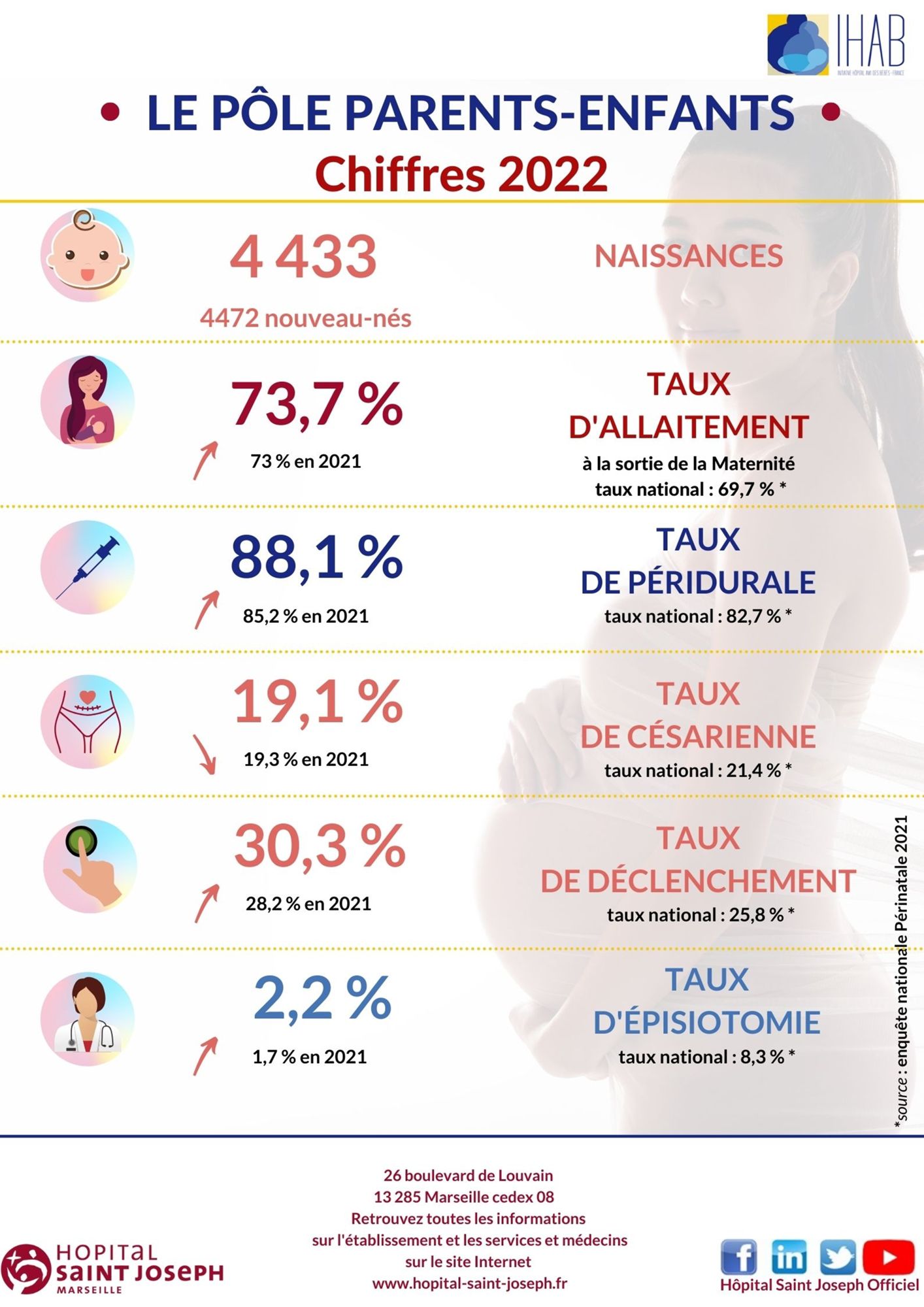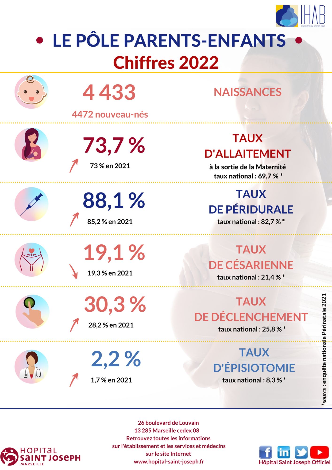2022 Dernière modification : 28 août 2023 Vous trouverez sur cette page la présentation d'une sélection de quelques chiffres-clés témoignant de l'activité et de la spécificité de notre établissement en 2022. Les chiffres de la maternité en 2022 (7.2 Mo)