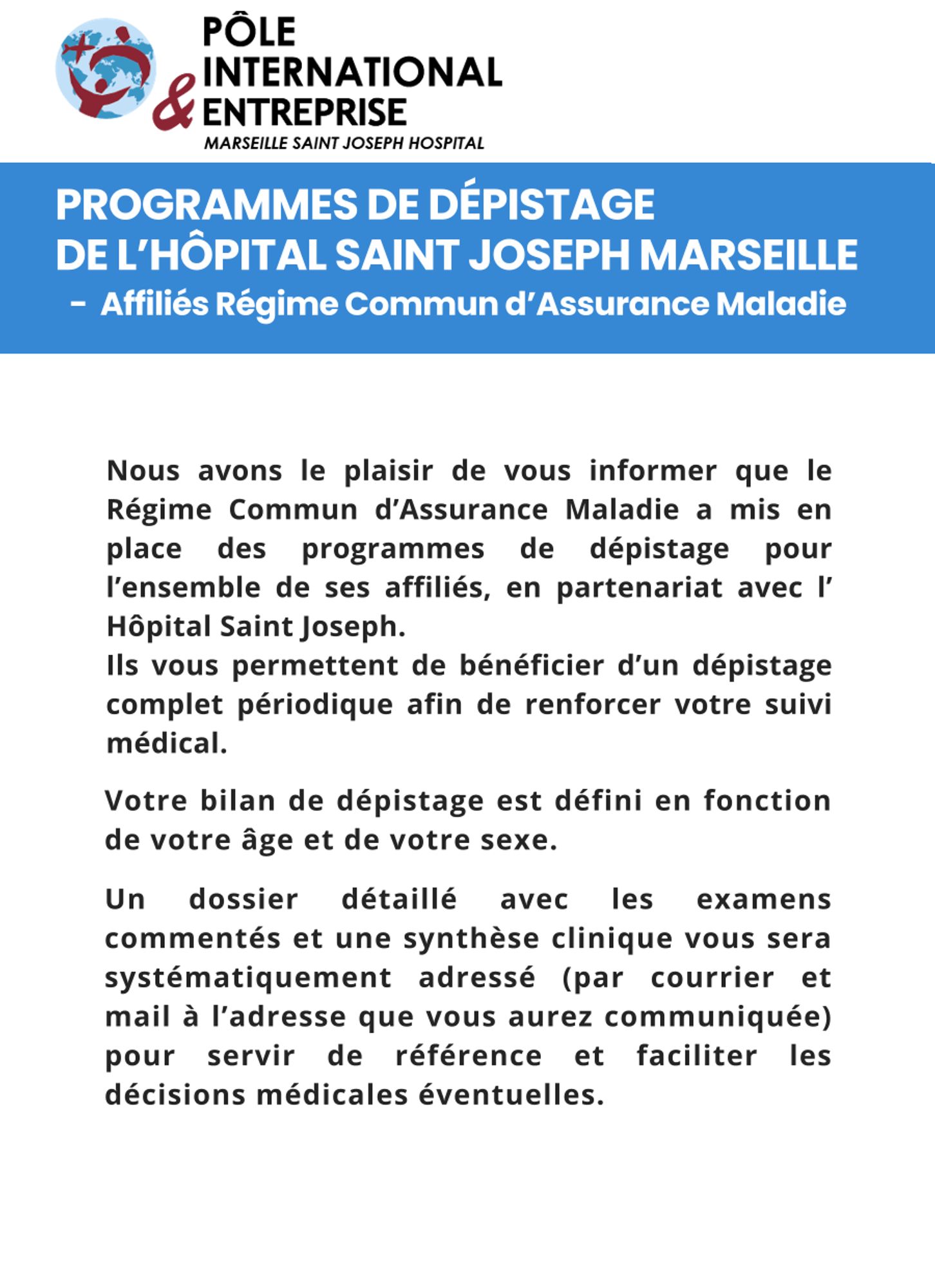 Pour les entreprises, l'Hôpital Saint Joseph propose des bilans de santé complet, adaptés à tous, et personnalisable en fonction du profil des salariés de l'entreprise.